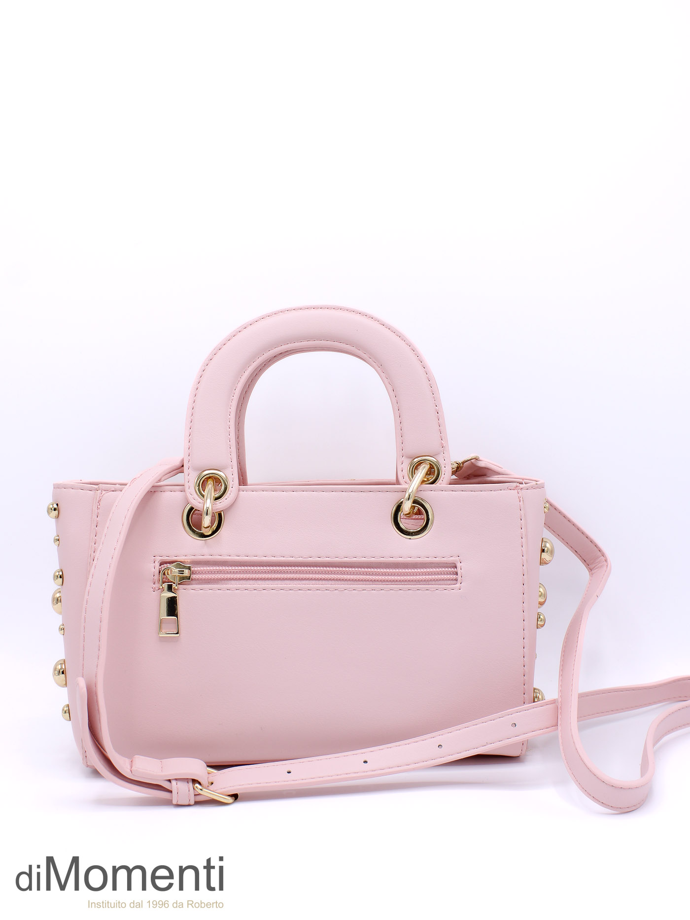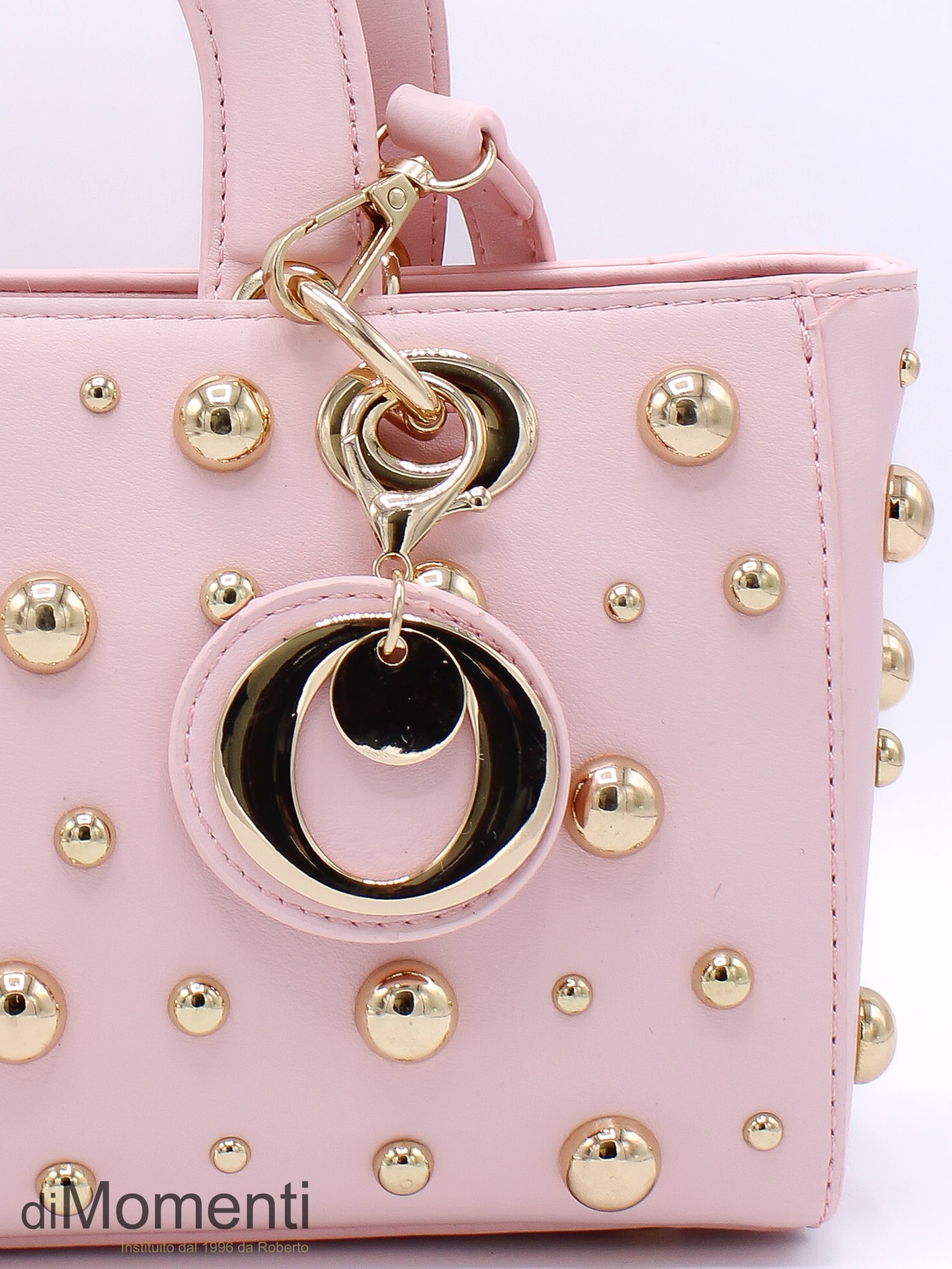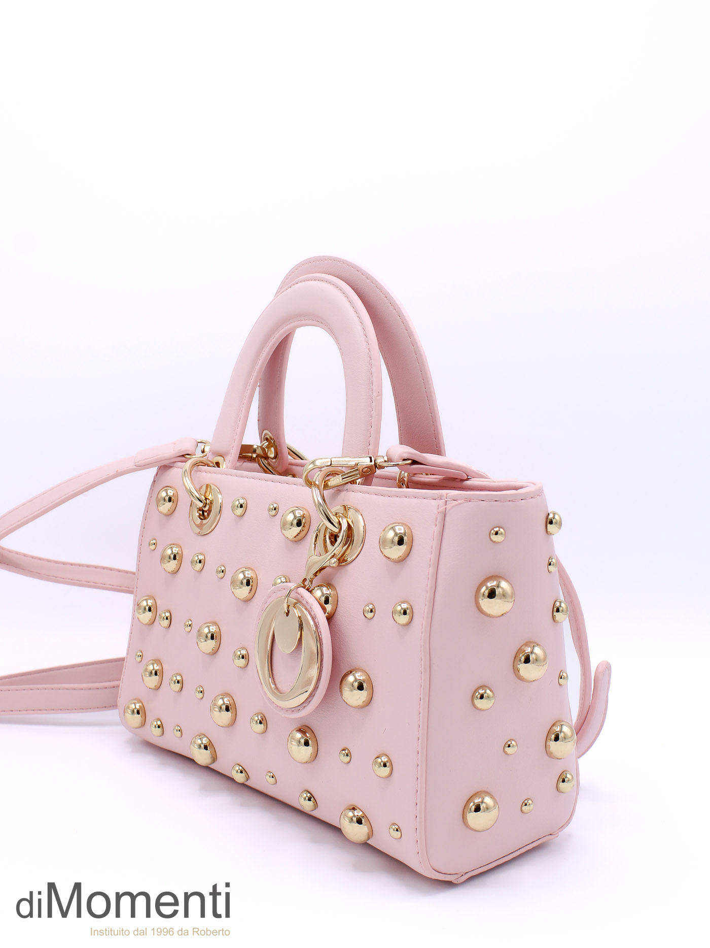 Stijlvol het voorjaar in! Dit tasje schittert met goudkleurige bolletjes in diverse maten voor een speelse, luxe look. Verkrijgbaar in de schattigste nieuwe voorjaarskleurtjes en voorzien van een handige, afneembare schouderriem. Een onmisbare en speelse eyecatcher.