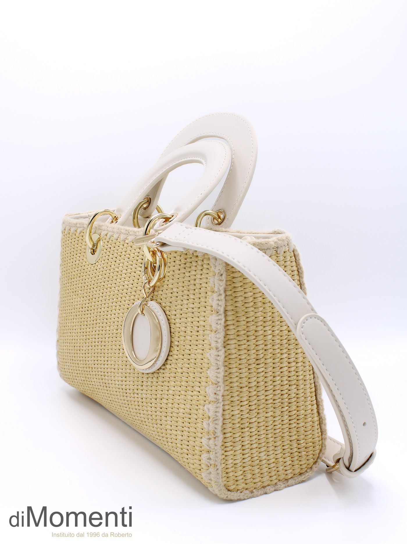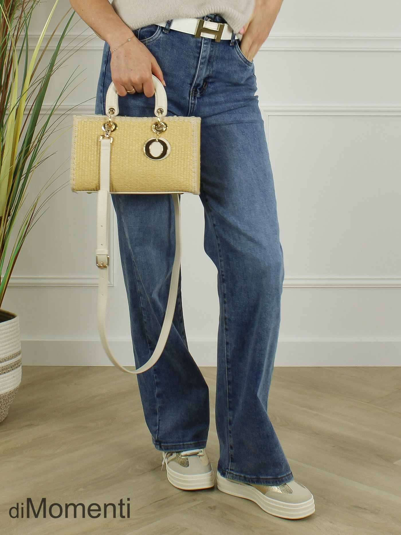 Stijlvol het voorjaar in! Dit strakke tasje is een combinatie van pu en gevlochten riet voor een echte zomerse look. Verkrijgbaar in mooie nieuwe voorjaarskleuren en voorzien van een handige, afneembare schouderriem. Echt een eyecatcher.