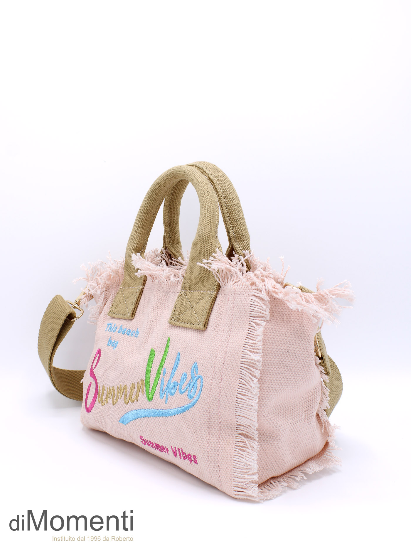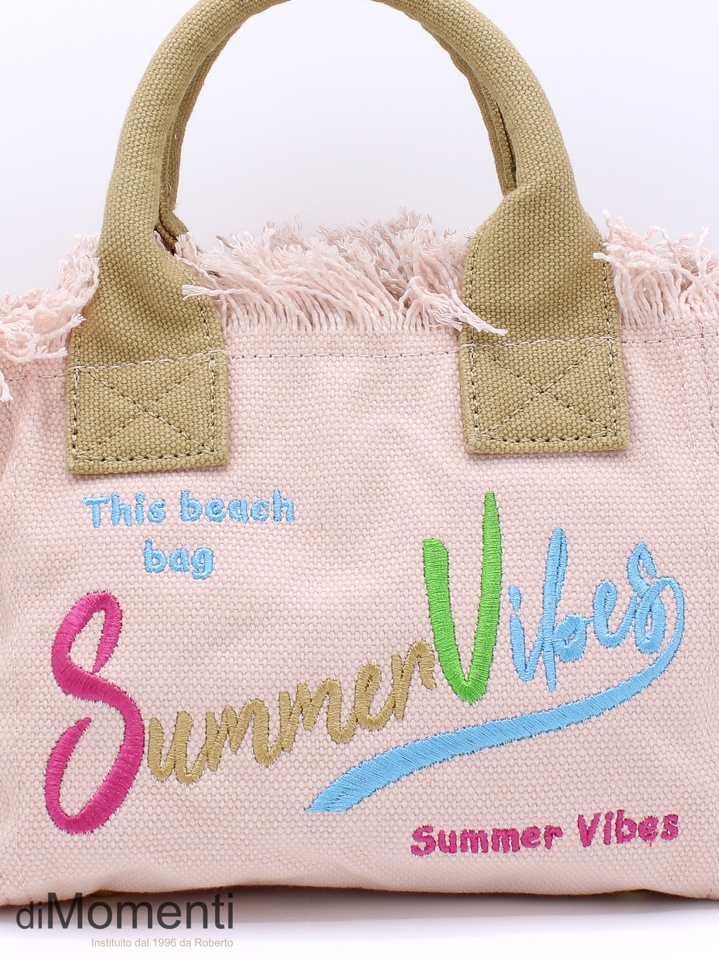 Nieuw is deze zomerfavoriet in ibiza style: dit schattige katoenen handtasje met speelse franjes en hippe contrastkleuren. De geborduurde tekst “Summer Vibes” in vrolijke kleuren geeft een unieke touch. Veilig afsluitbaar met rits en inclusief handige, afneembare schouderriem.