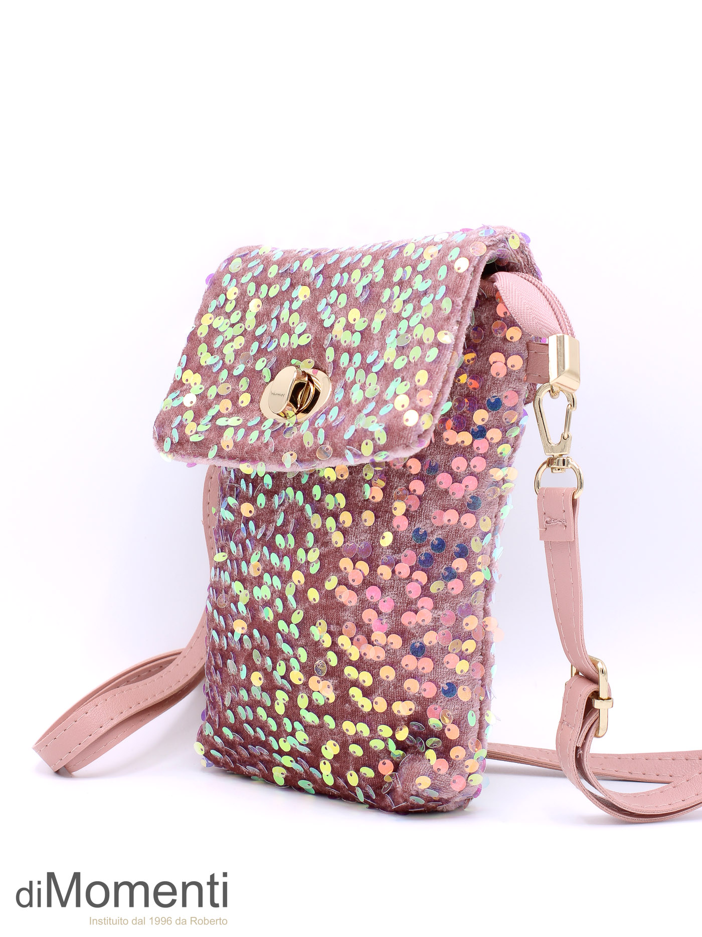 Dit stijlvolle tasje met all-over pailletten is het perfecte accessoire voor de feestdagen! Compact, maar ruim genoeg voor uw telefoon, portemonnee en sleutels. Het is geheel gevoerd en veilig afsluitbaar met een rits. Een sprankelende toevoeging aan elke feestelijke outfit!