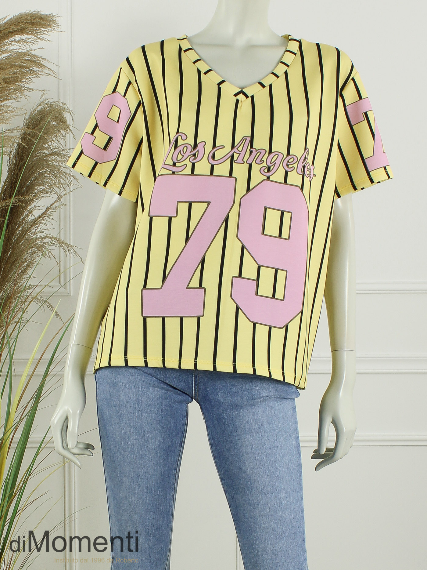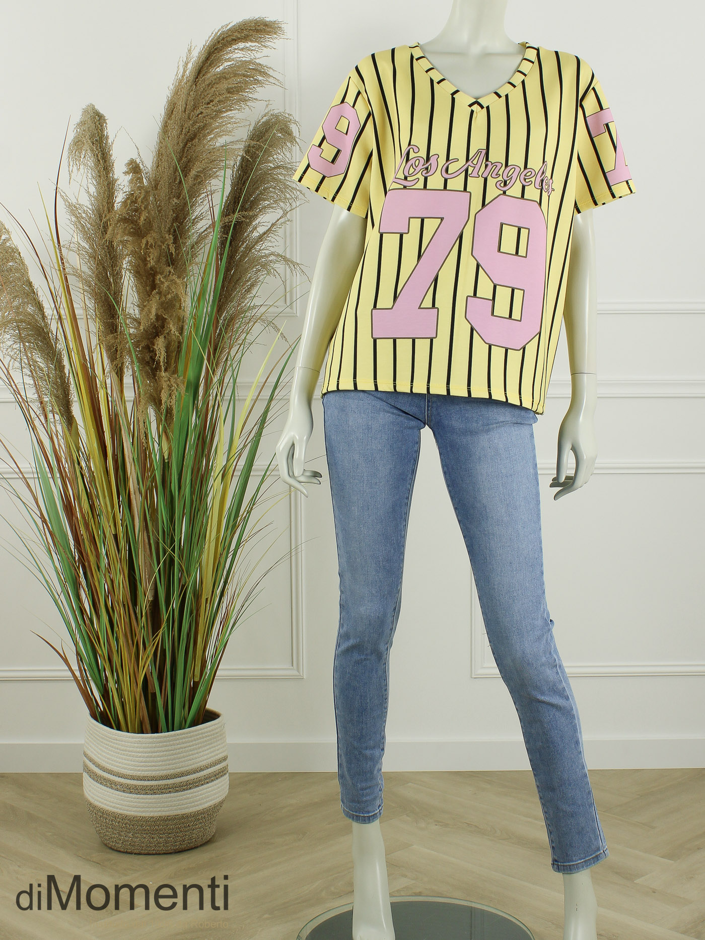 Scoor een sportieve look met deze trendy voetbal-stijl top! Uitgevoerd in een soepele stof met een stoere ‘Los Angeles 79’ print en matchende nummers op de mouwen. De hippe V-hals maakt het design helemaal af. Combineer hem met de bijpassende joggingbroek voor het ultieme, comfy statement-pak.