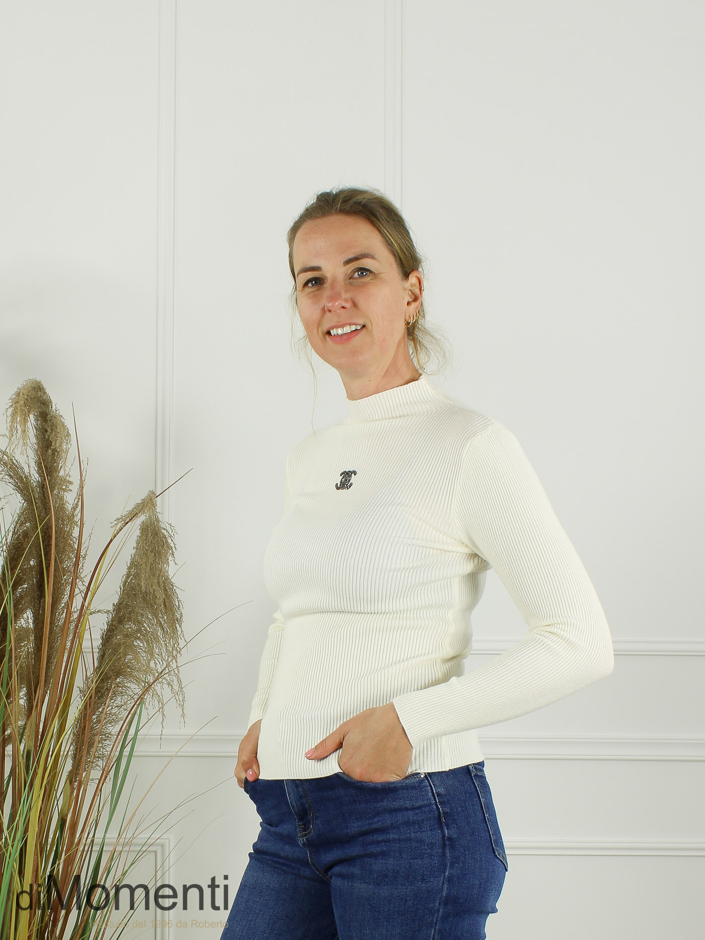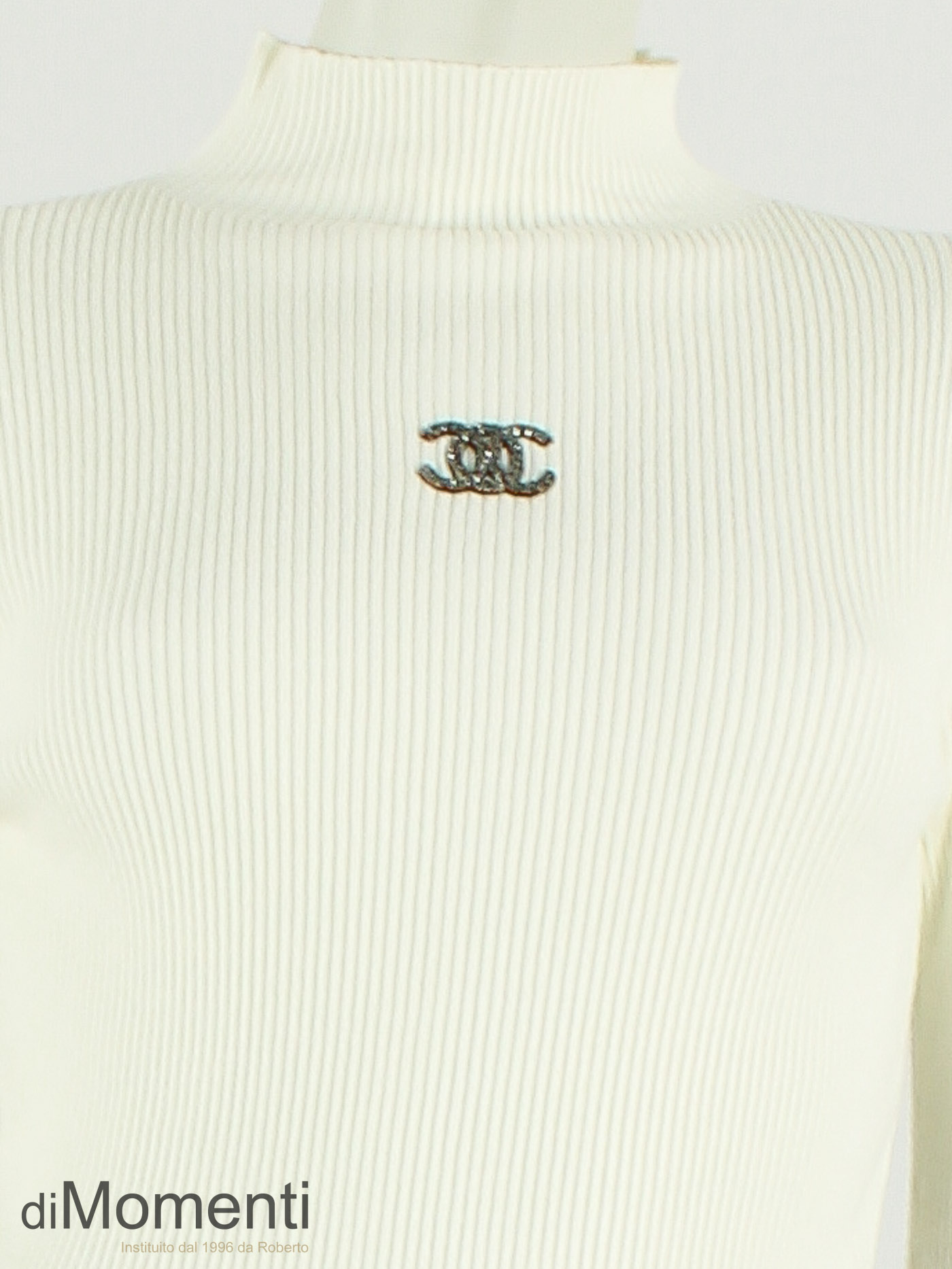 De perfecte combinatie van comfort en elegantie. Deze geribbelde top met lange mouw, verrijkt met een prachtige strass applicatie is gemaakt van een soepele viscose mix. De stof met veel stretch zorgt ervoor dat de top geschikt is voor een breed scala aan maten. Een tijdloze toevoeging aan elke collectie.