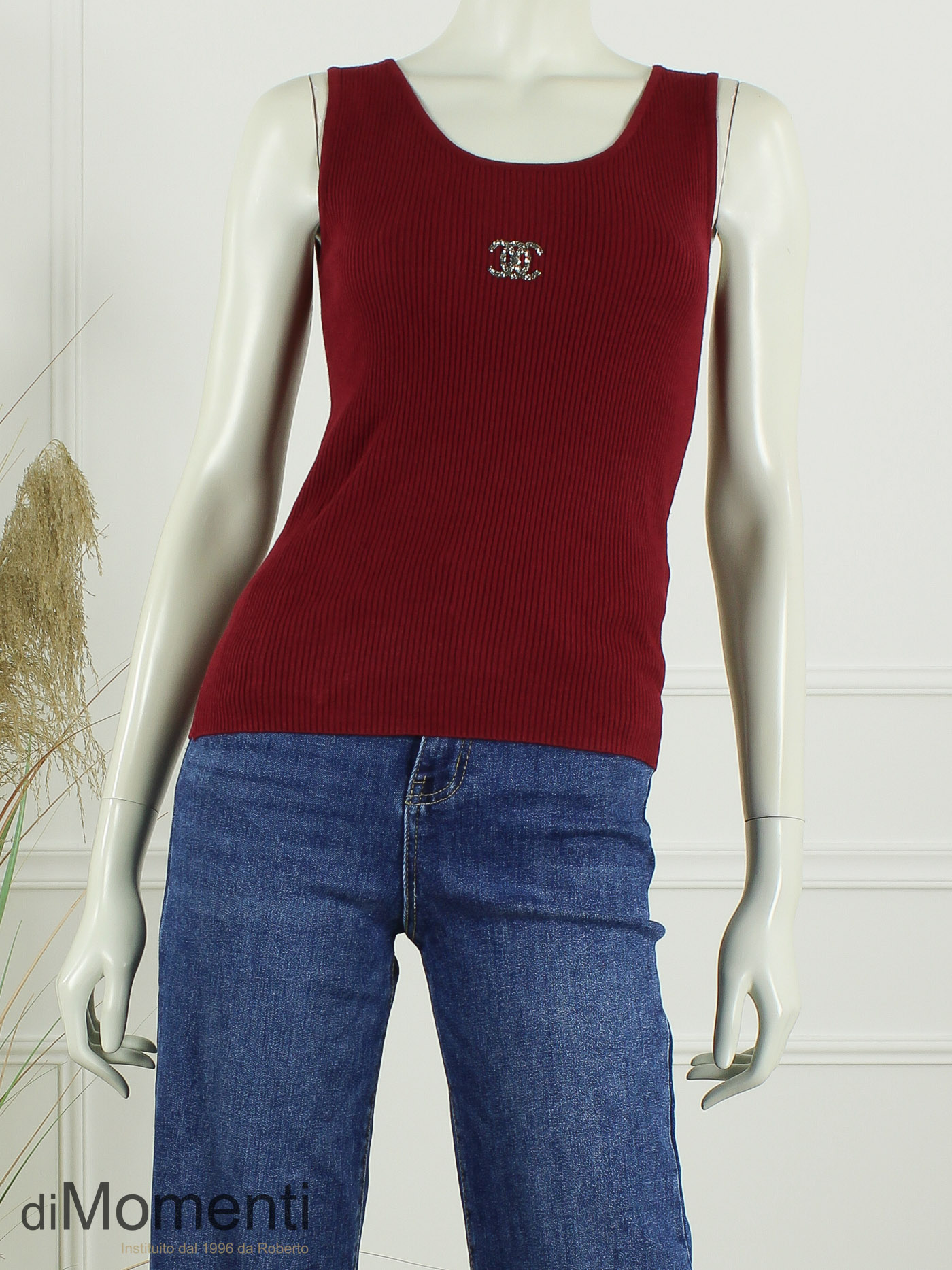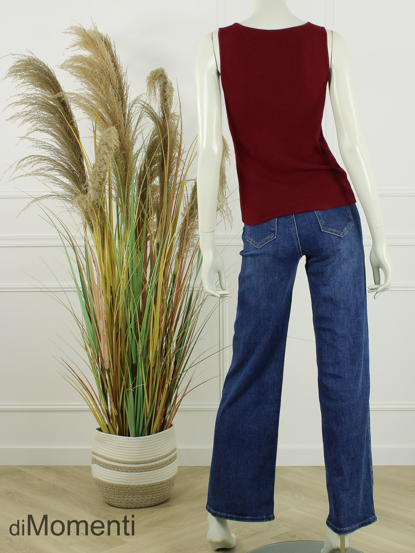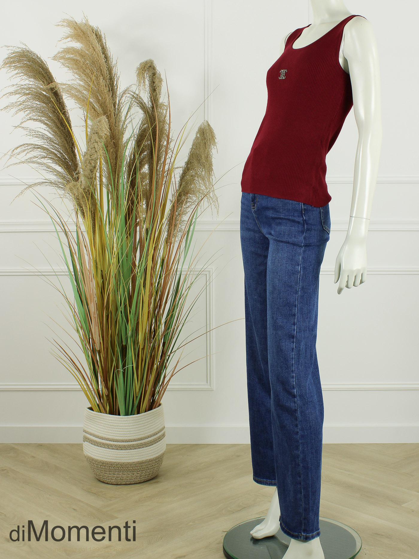 De perfecte combinatie van comfort en elegantie. Deze geribbelde top, verrijkt met een prachtige strass applicatie is gemaakt van een soepele viscose mix. De stof met veel stretch zorgt ervoor dat de top geschikt is voor een breed scala aan maten. Een tijdloze toevoeging aan elke collectie.