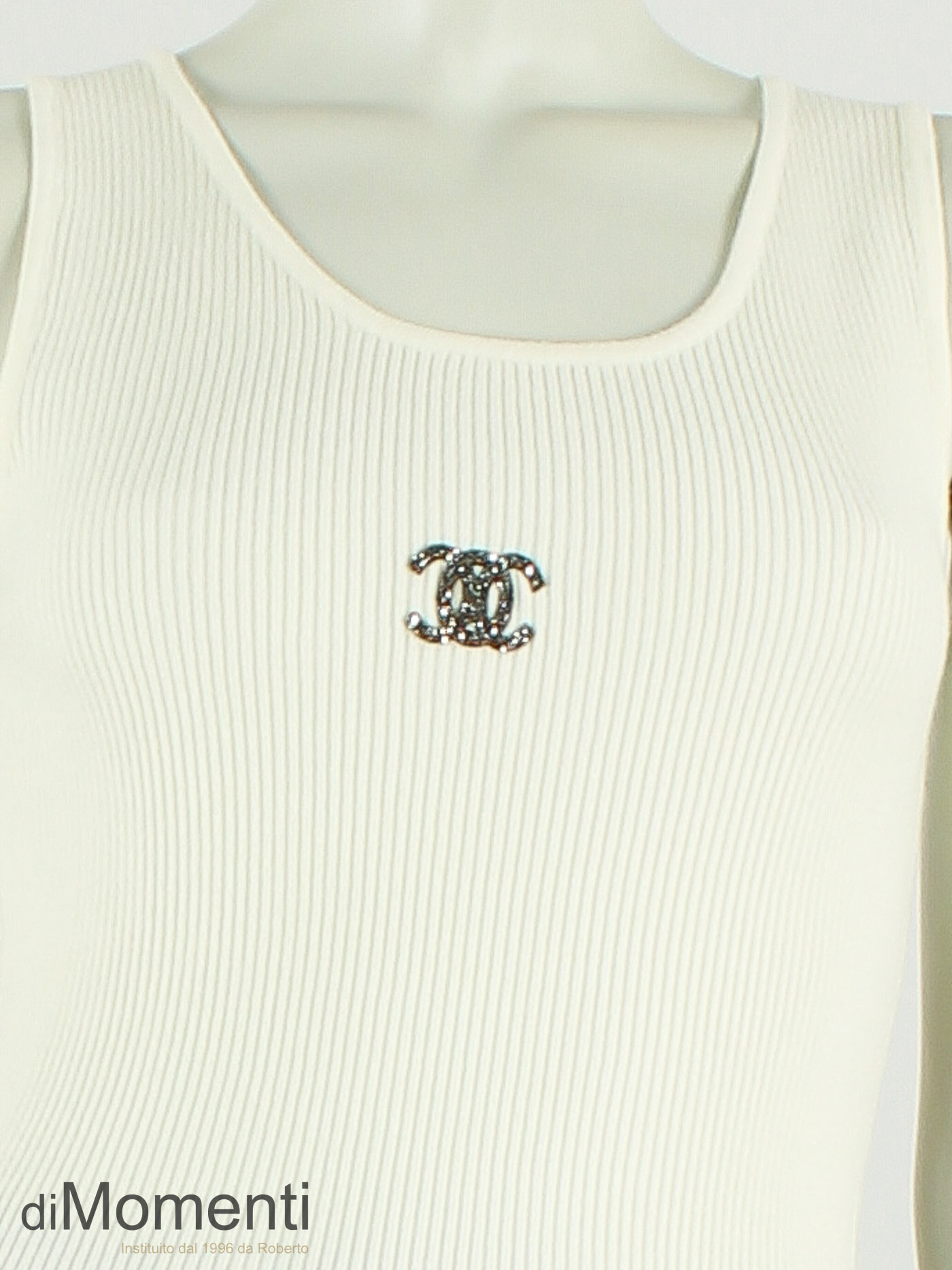 De perfecte combinatie van comfort en elegantie. Deze geribbelde top, verrijkt met een prachtige strass applicatie is gemaakt van een soepele viscose mix. De stof met veel stretch zorgt ervoor dat de top geschikt is voor een breed scala aan maten. Een tijdloze toevoeging aan elke collectie.