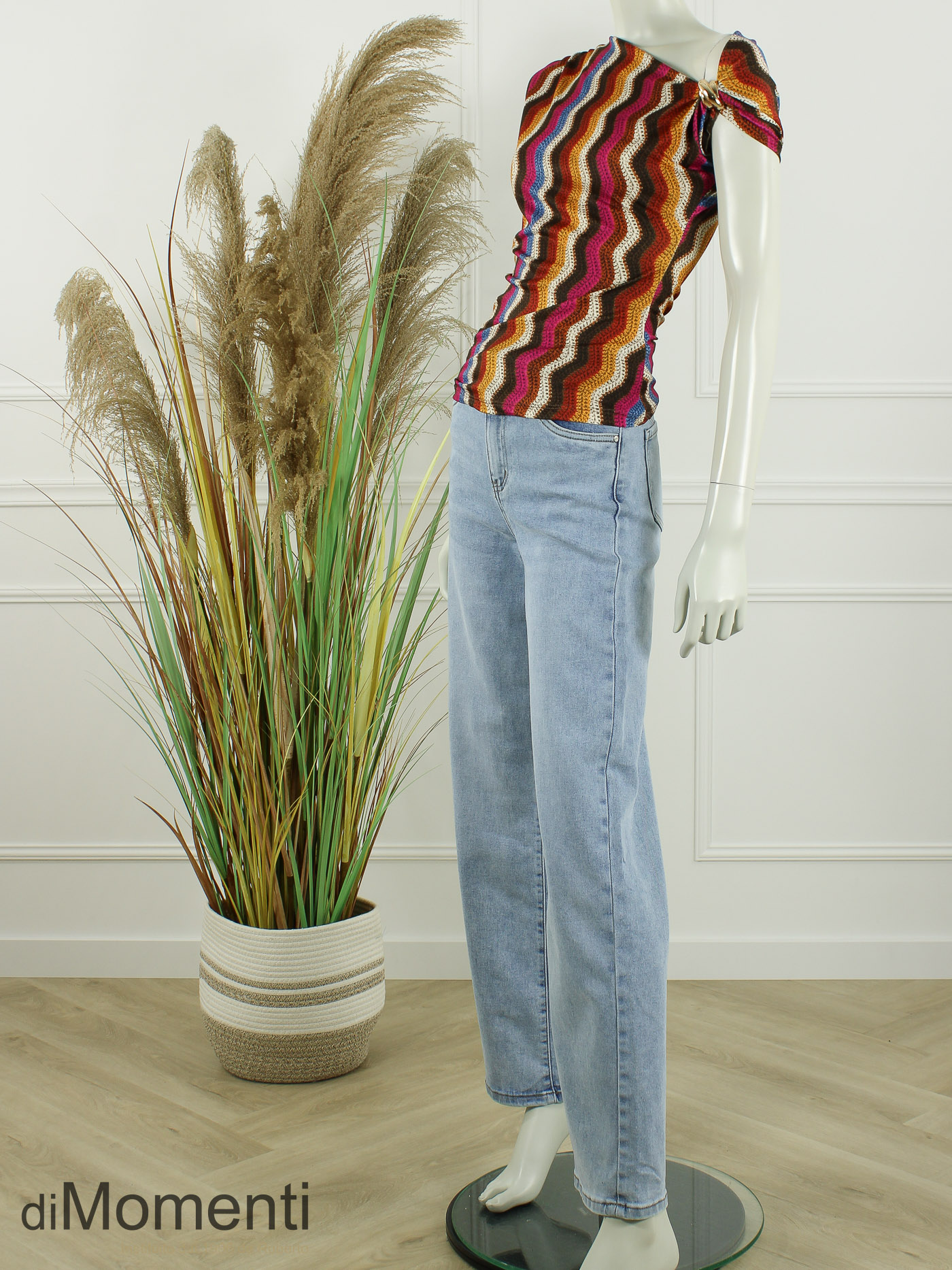 Deze aansluitende top is dé must-have voor een jonge, stijlvolle look. Voorzien van een luxe goudkleurige gesp op de schouder en speelse rimpeltjes aan de zijkant. Ook verleidelijk off-shoulder te dragen!