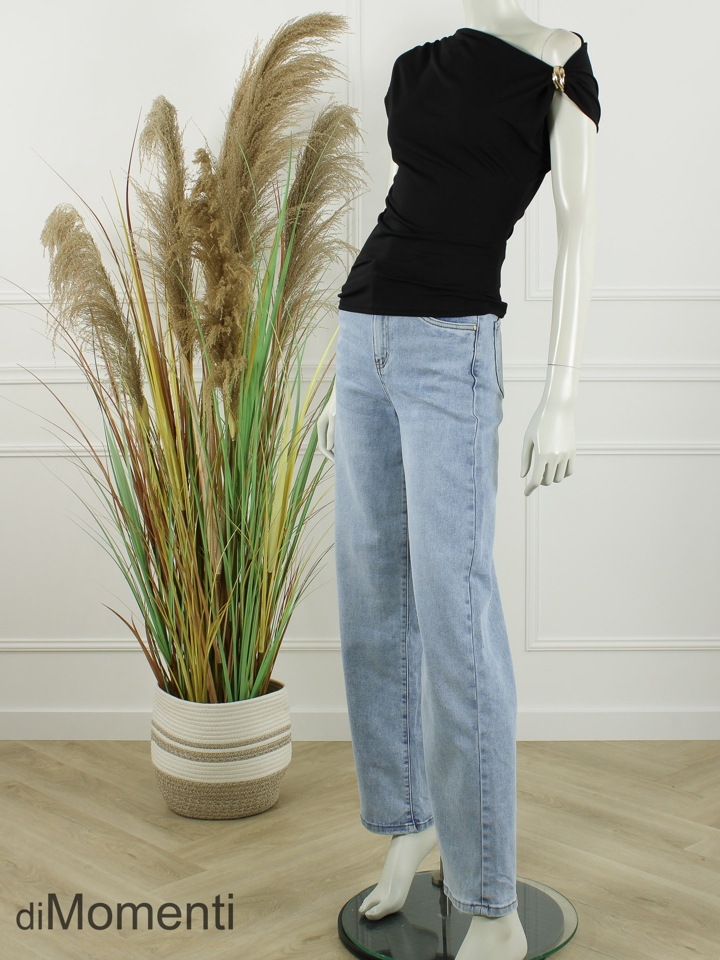 Deze aansluitende top is dé must-have voor een jonge, stijlvolle look. Voorzien van een luxe goudkleurige gesp op de schouder en speelse rimpeltjes aan de zijkant. Ook verleidelijk off-shoulder te dragen!