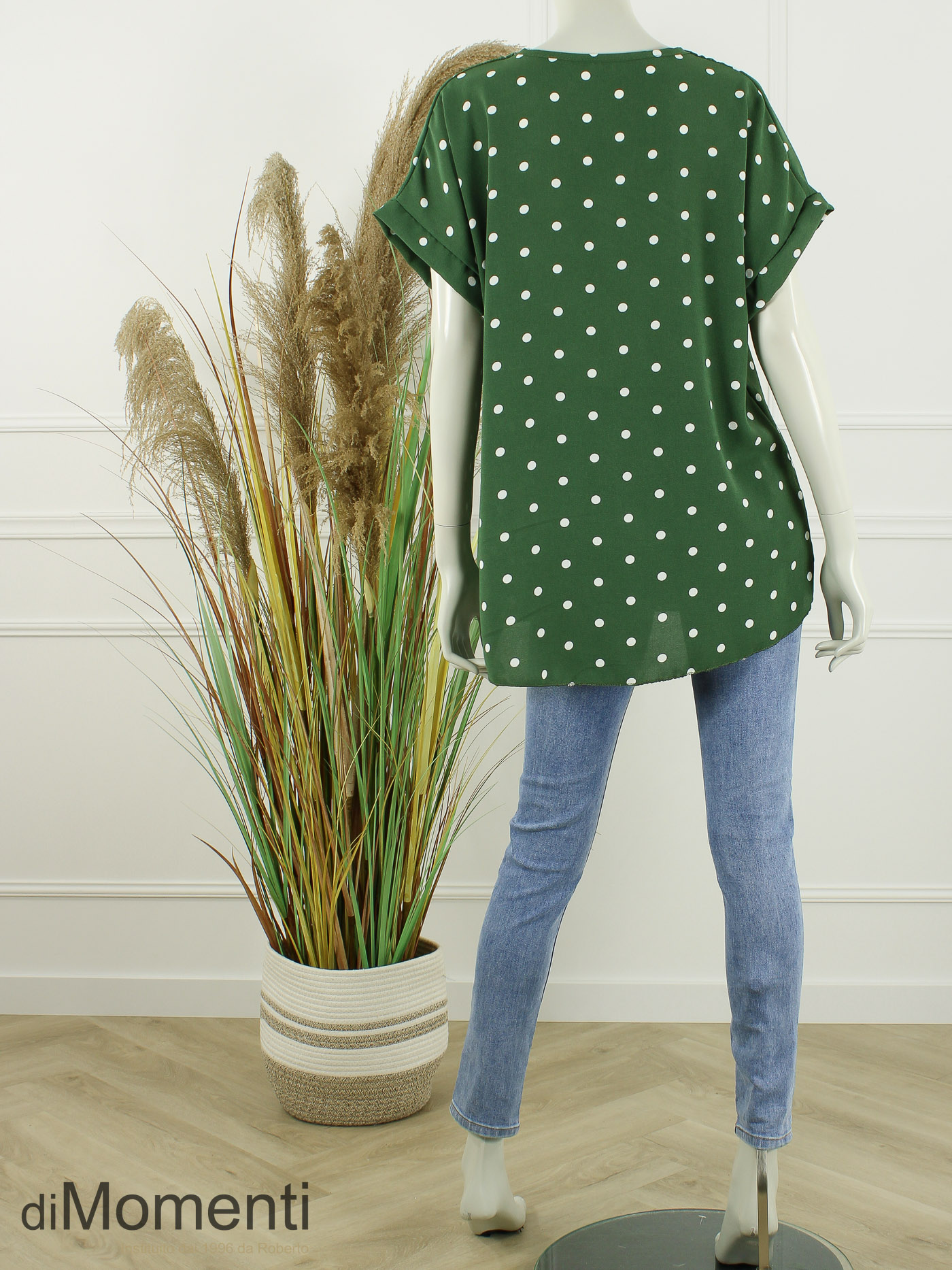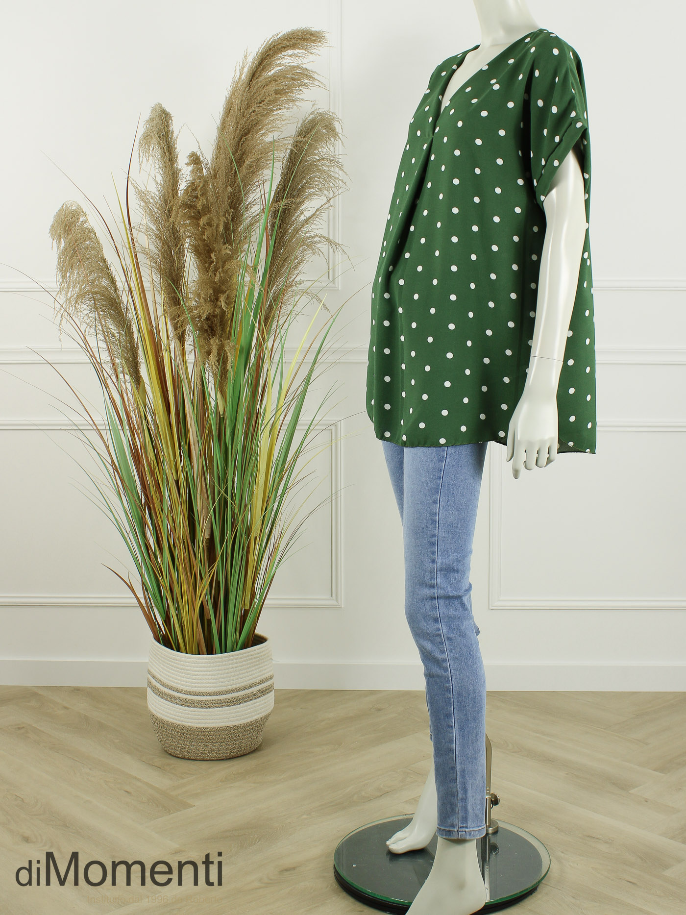 Stijlvol en luchtig de zomer door! Deze ruimvallende, lange top met een trendy stippel print en elegante plooi aan de voorzijde heeft een vrouwelijke uitstraling. De fijne viscose mix draagt heerlijk koel en comfortabel. Een veelzijdige essential die overal bij past en verkrijgbaar is in prachtige kleuren!