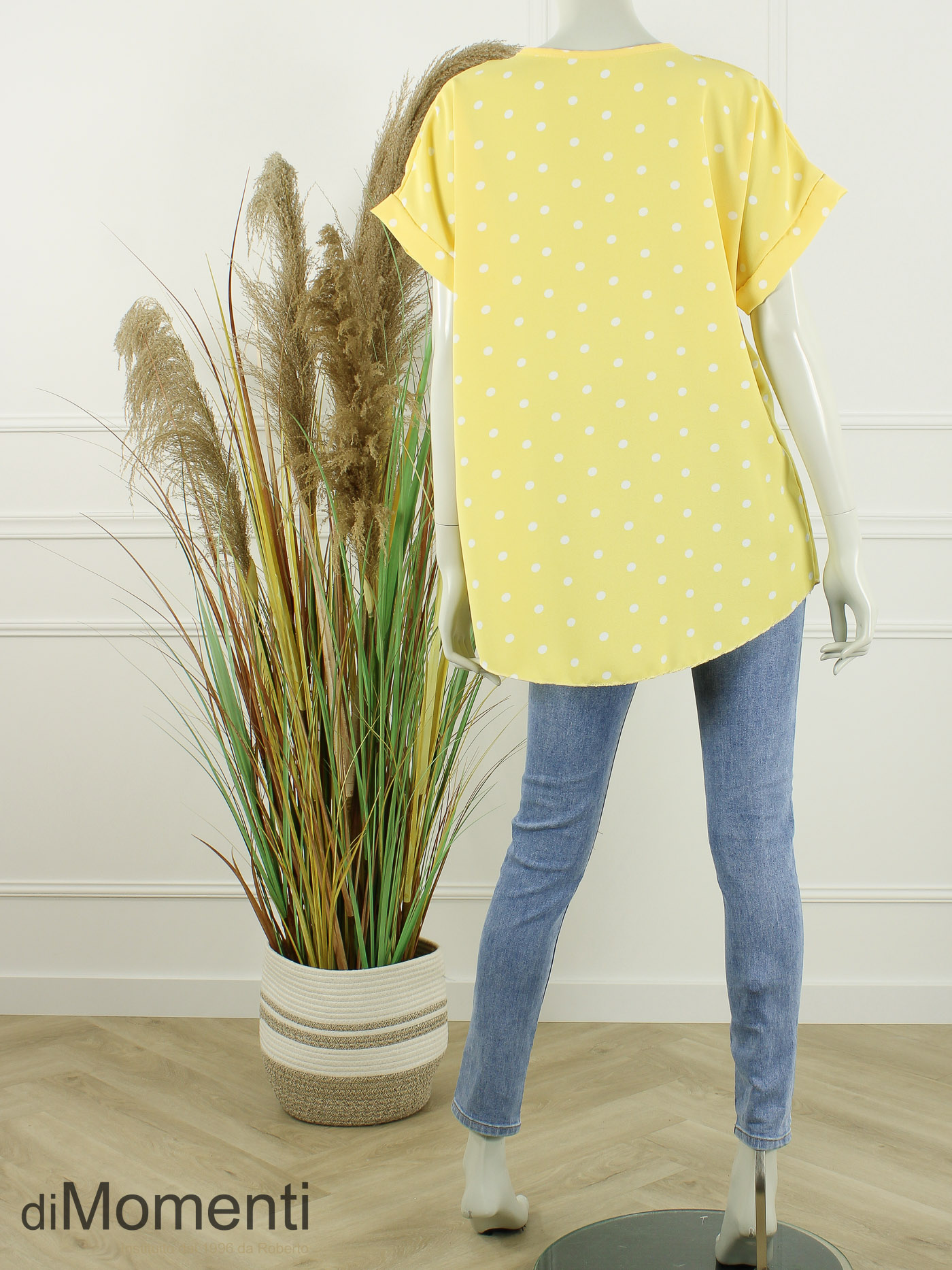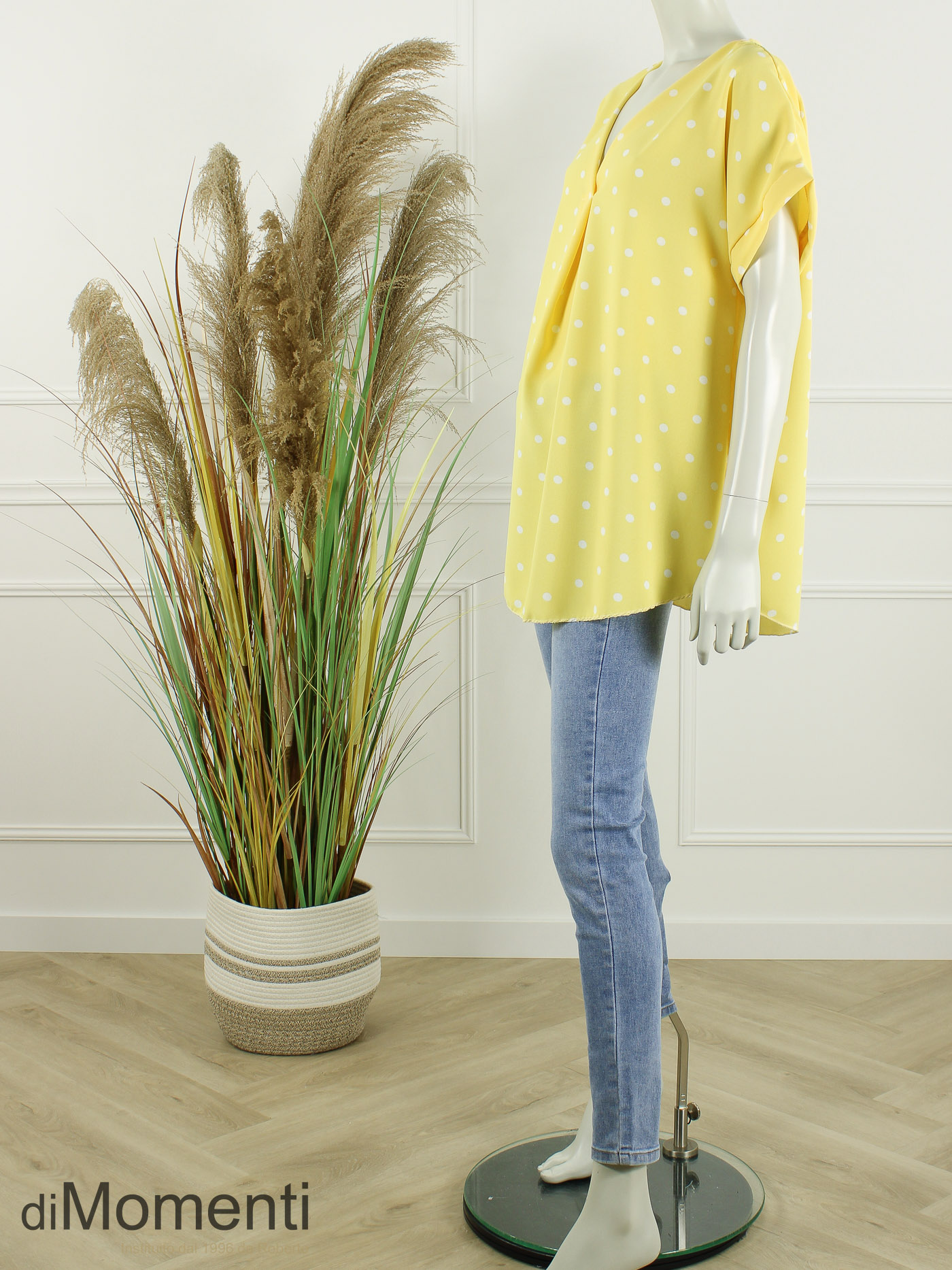 Stijlvol en luchtig de zomer door! Deze ruimvallende, lange top met een trendy stippel print en elegante plooi aan de voorzijde heeft een vrouwelijke uitstraling. De fijne viscose mix draagt heerlijk koel en comfortabel. Een veelzijdige essential die overal bij past en verkrijgbaar is in prachtige kleuren!