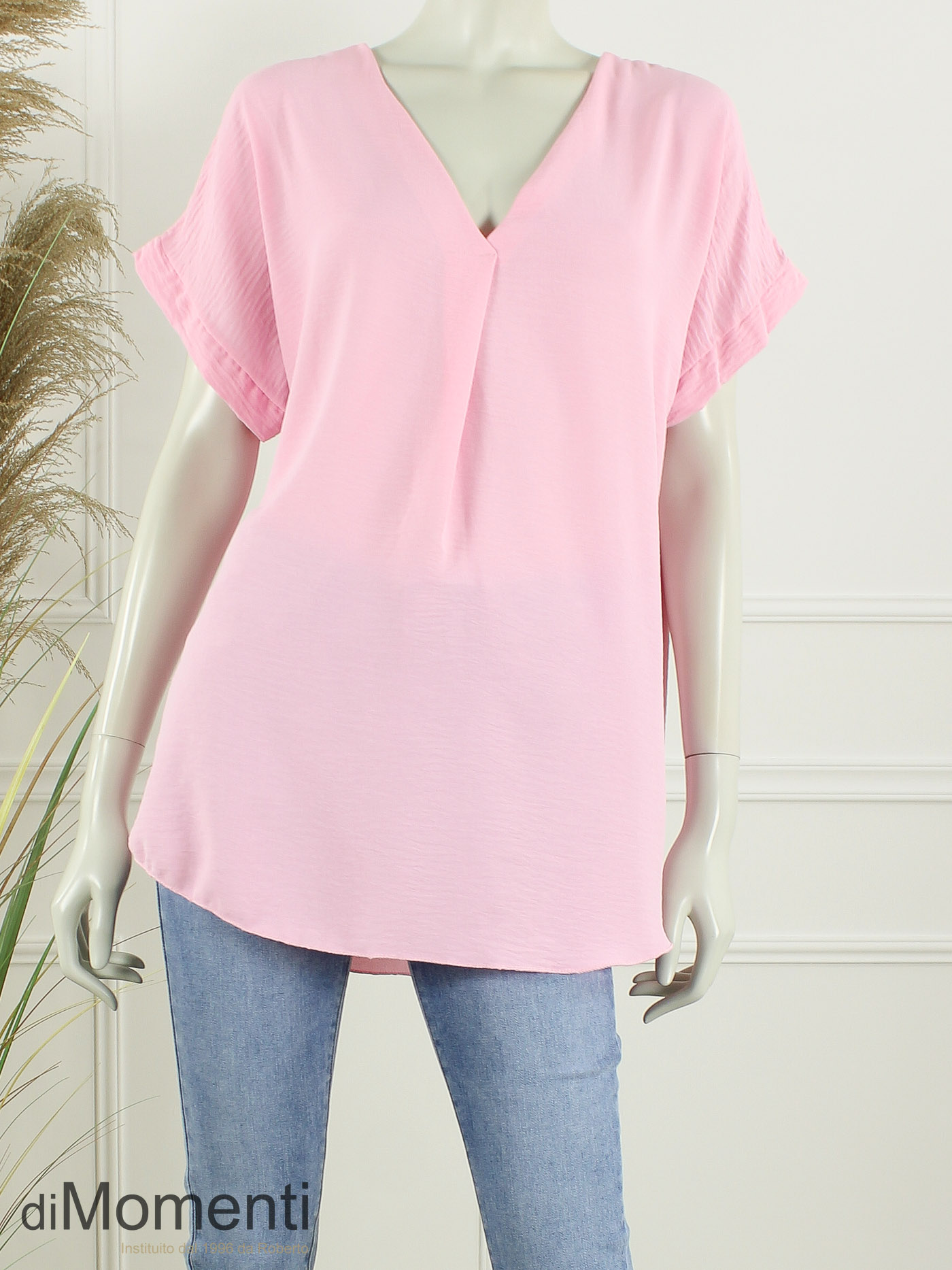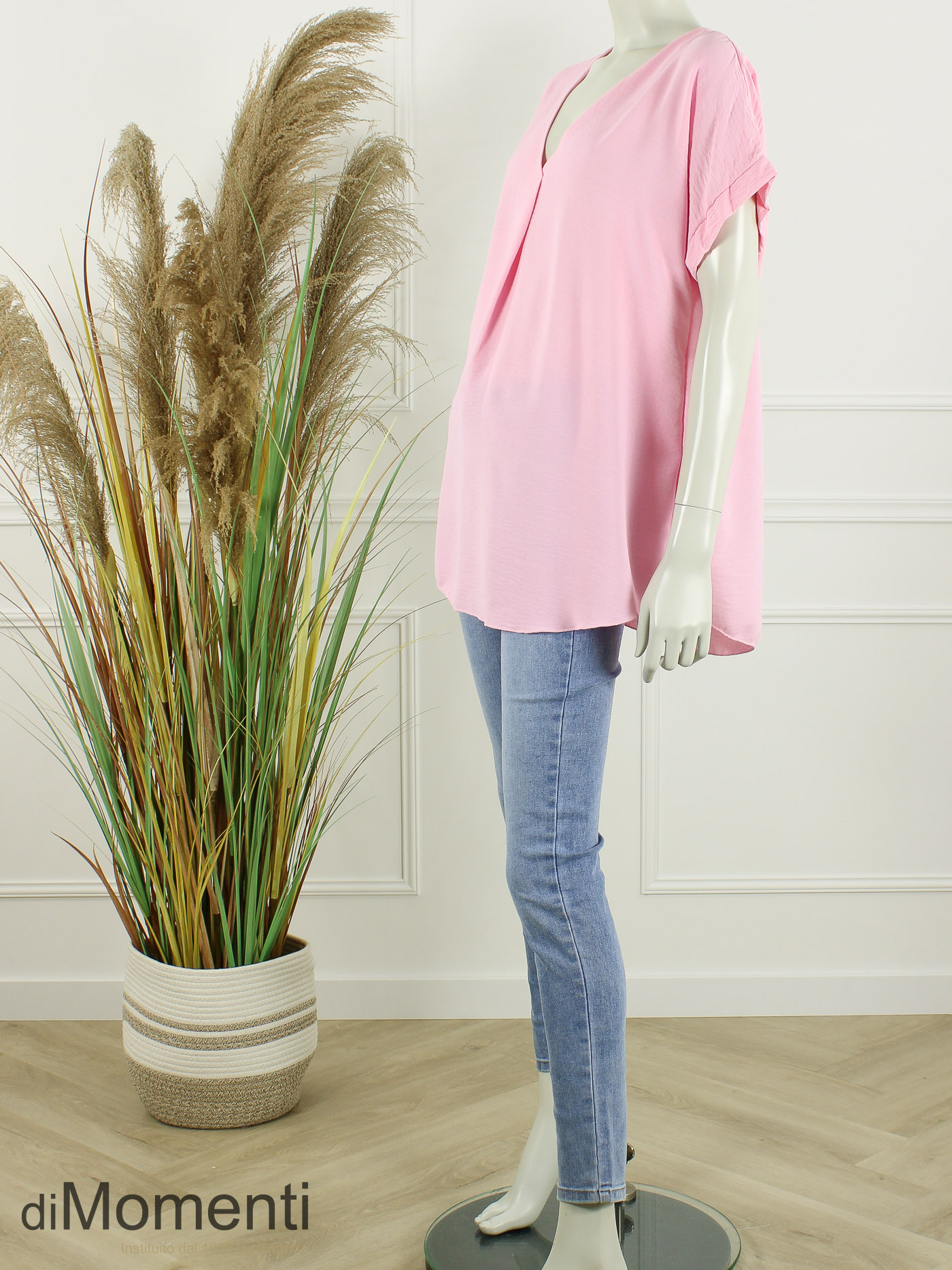 Stijlvol en luchtig de zomer door! Deze ruimvallende, lange top met een elegante plooi aan de voorzijde en mooie V-hals heeft een vrouwelijke uitstraling. De fijne viscose mix draagt heerlijk koel en comfortabel. Een veelzijdige essential die overal bij past en verkrijgbaar is in prachtige kleuren!