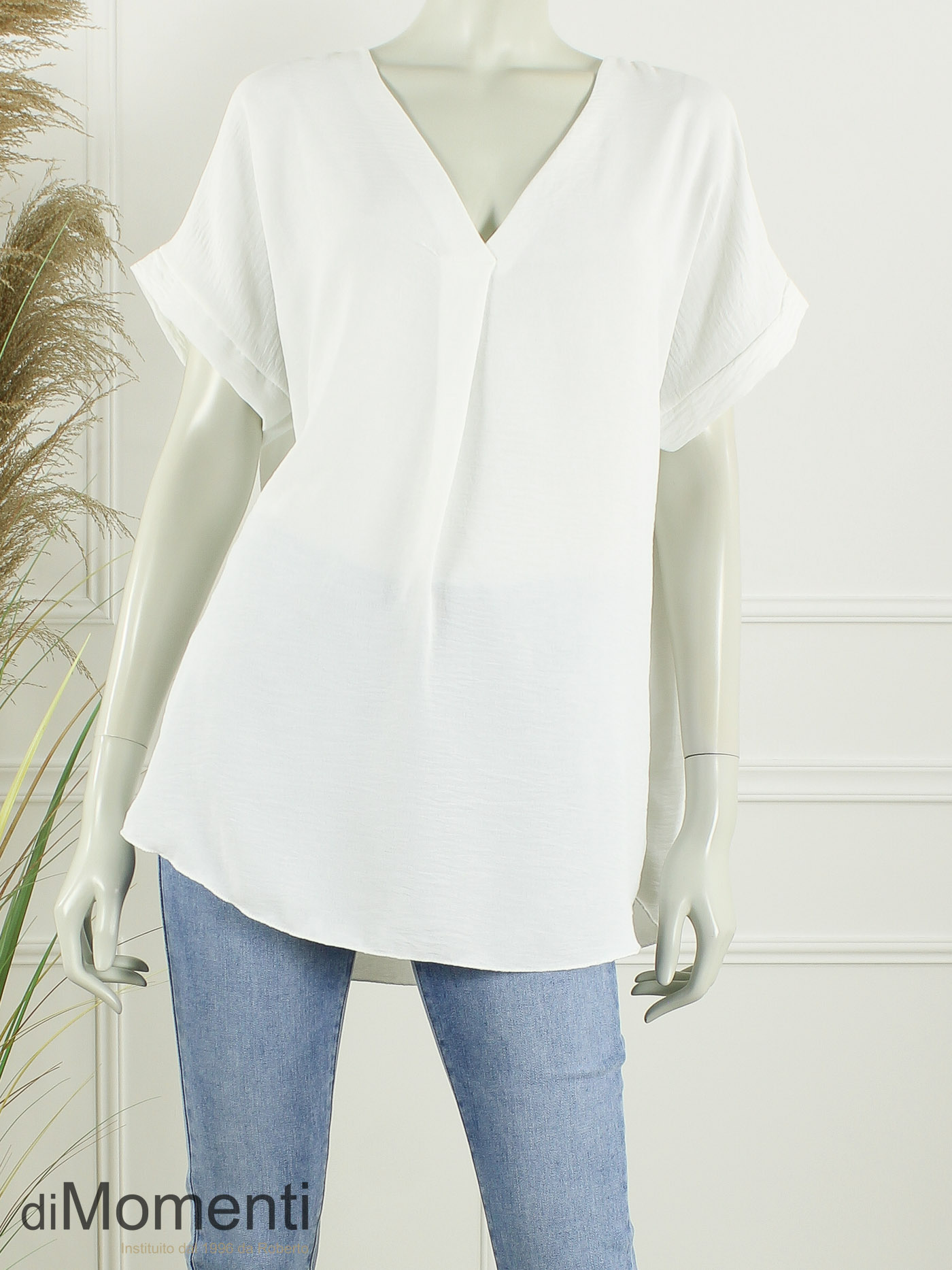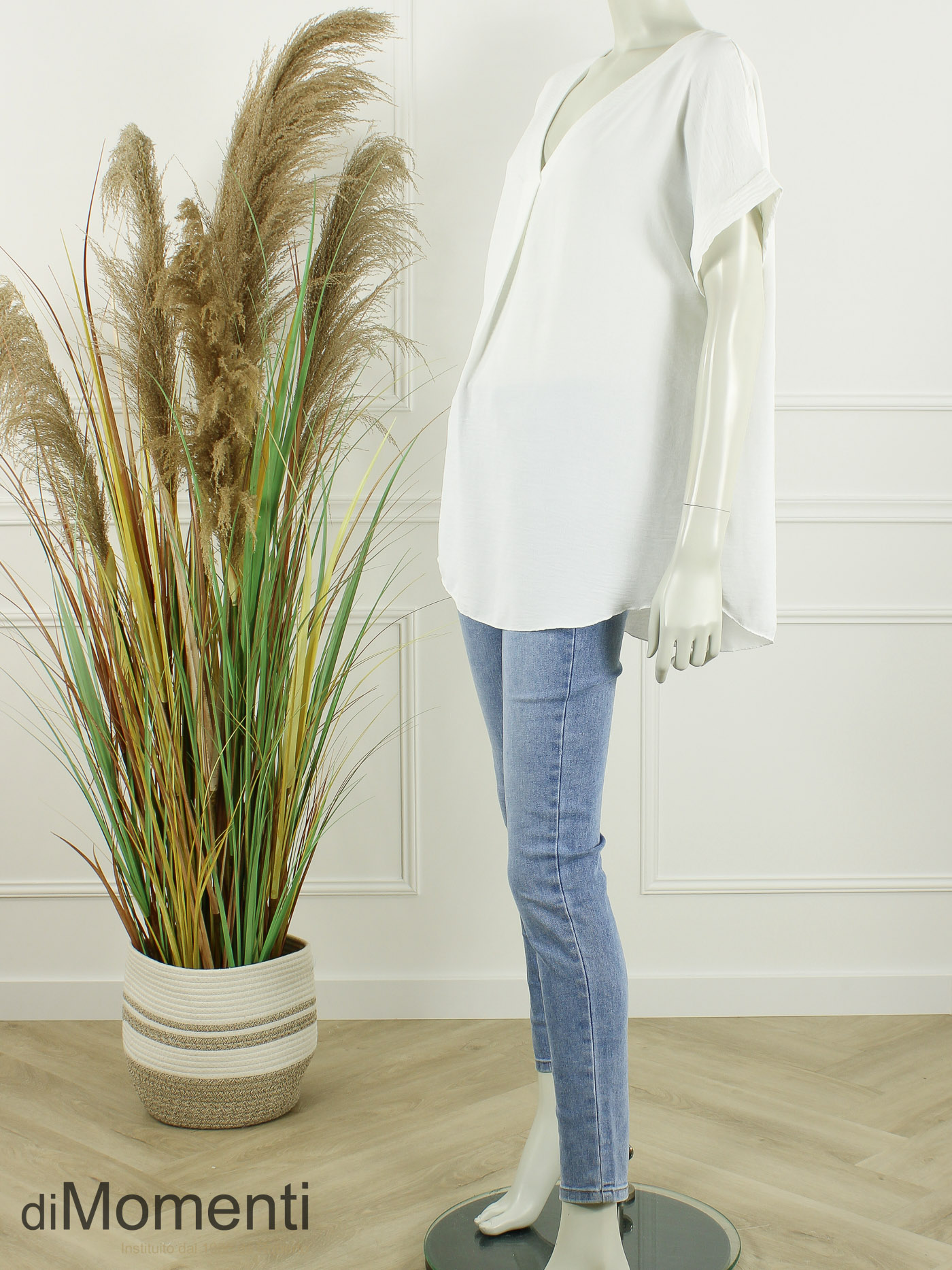 Stijlvol en luchtig de zomer door! Deze ruimvallende, lange top met een elegante plooi aan de voorzijde en mooie V-hals heeft een vrouwelijke uitstraling. De fijne viscose mix draagt heerlijk koel en comfortabel. Een veelzijdige essential die overal bij past en verkrijgbaar is in prachtige kleuren!