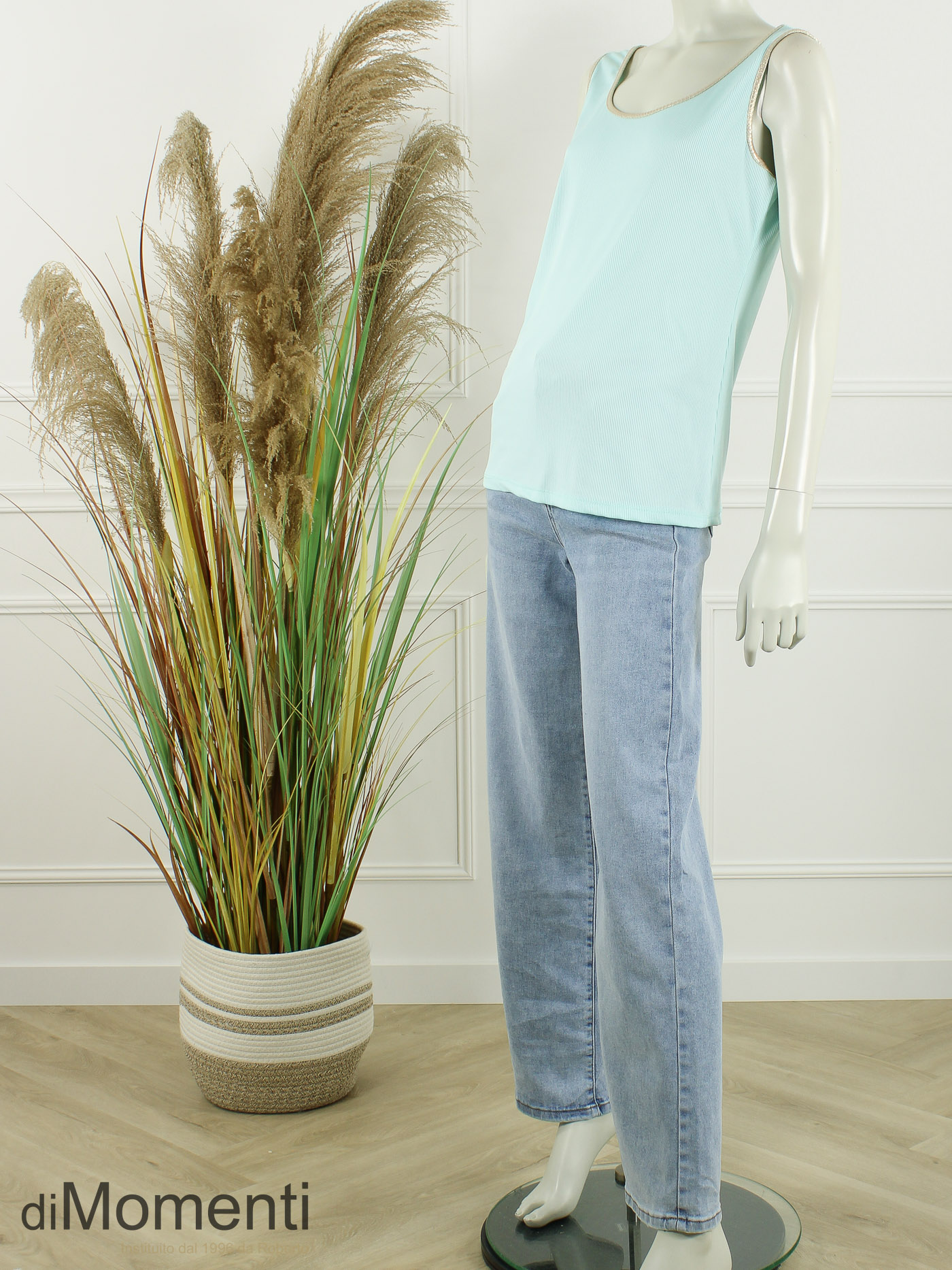 Stijlvol en comfortabel! Deze mouwloze top met verfijnde ribstructuur sluit prachtig aan en biedt een heerlijke, lange pasvorm. De goudkleurige bies geeft een luxe touch. Heel goed te combineren onder een jasje of blazer. Dankzij de fijne stretch perfect voor meerdere maten. Nu verkrijgbaar in de mooiste voorjaarskleuren – een onmisbare basic!