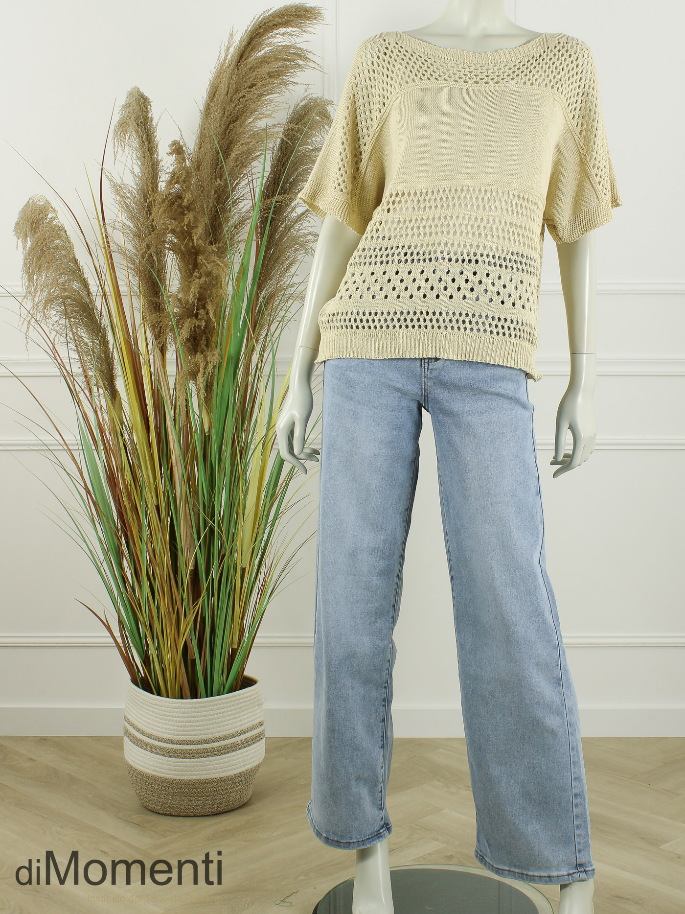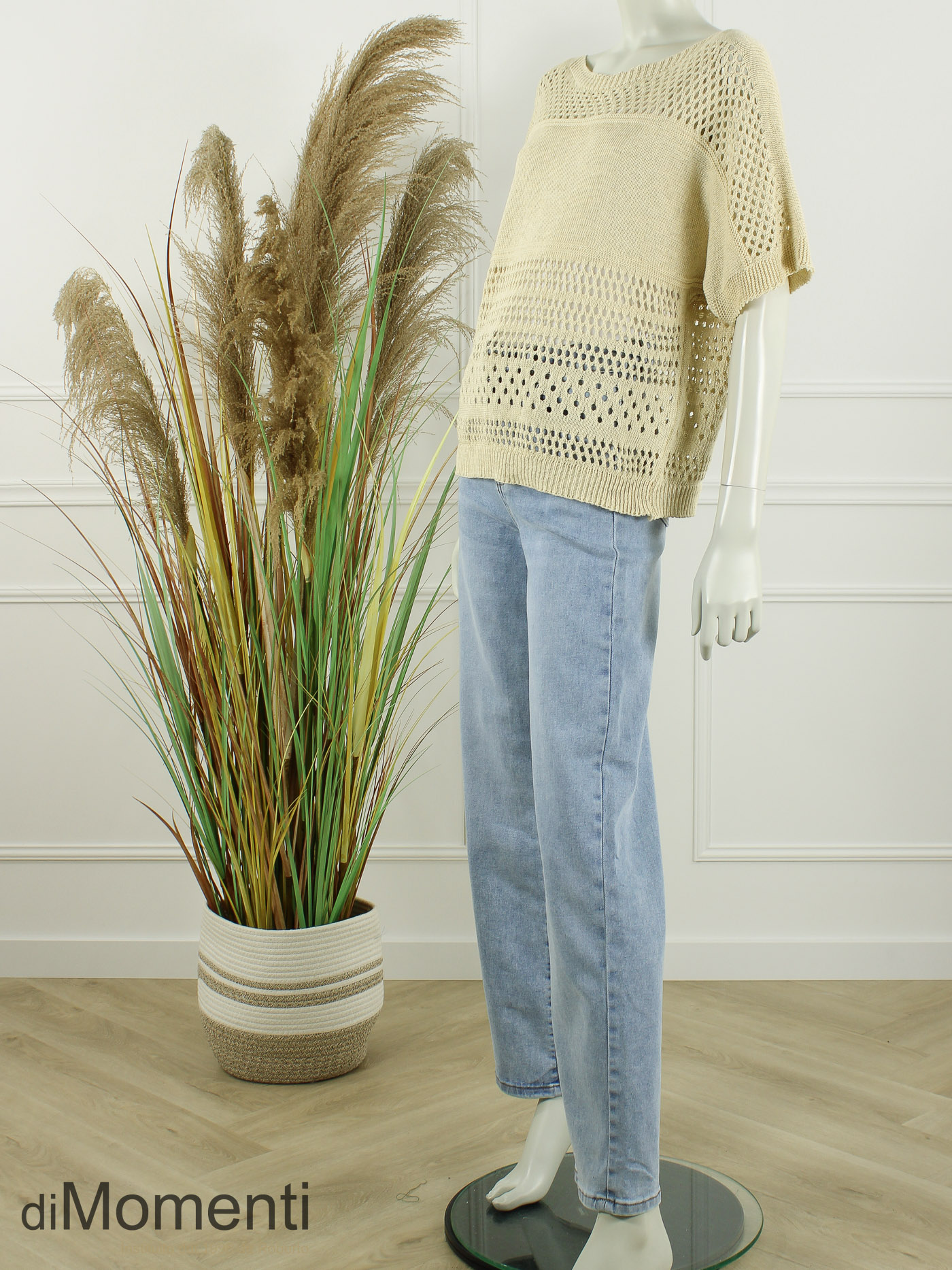 Deze royale top is de perfecte mix van comfort en vrouwelijke elegantie. De aangeknipte korte mouw geeft een moderne look, terwijl de verfijnde ajour-details zorgen voor een romantische touch.