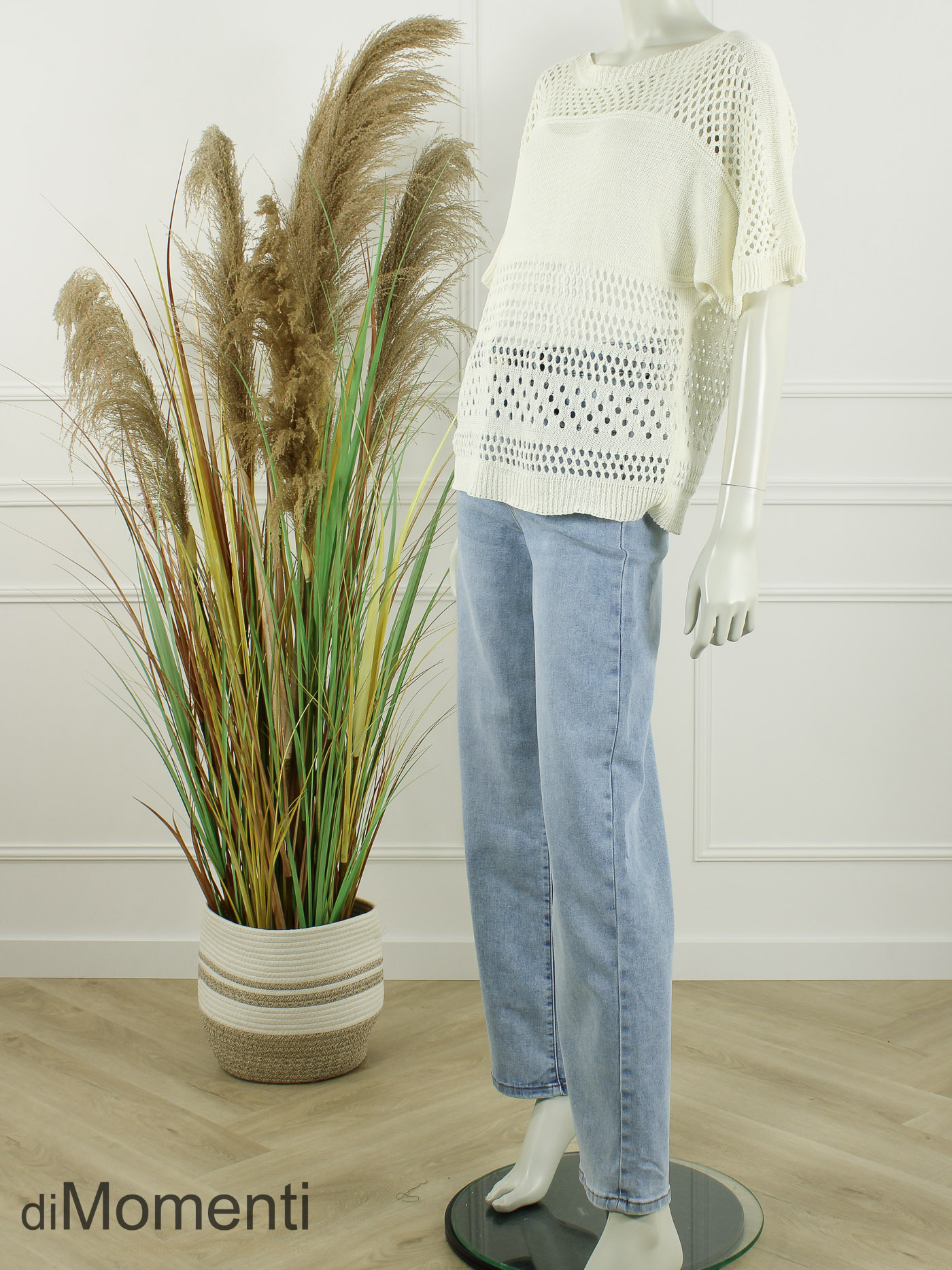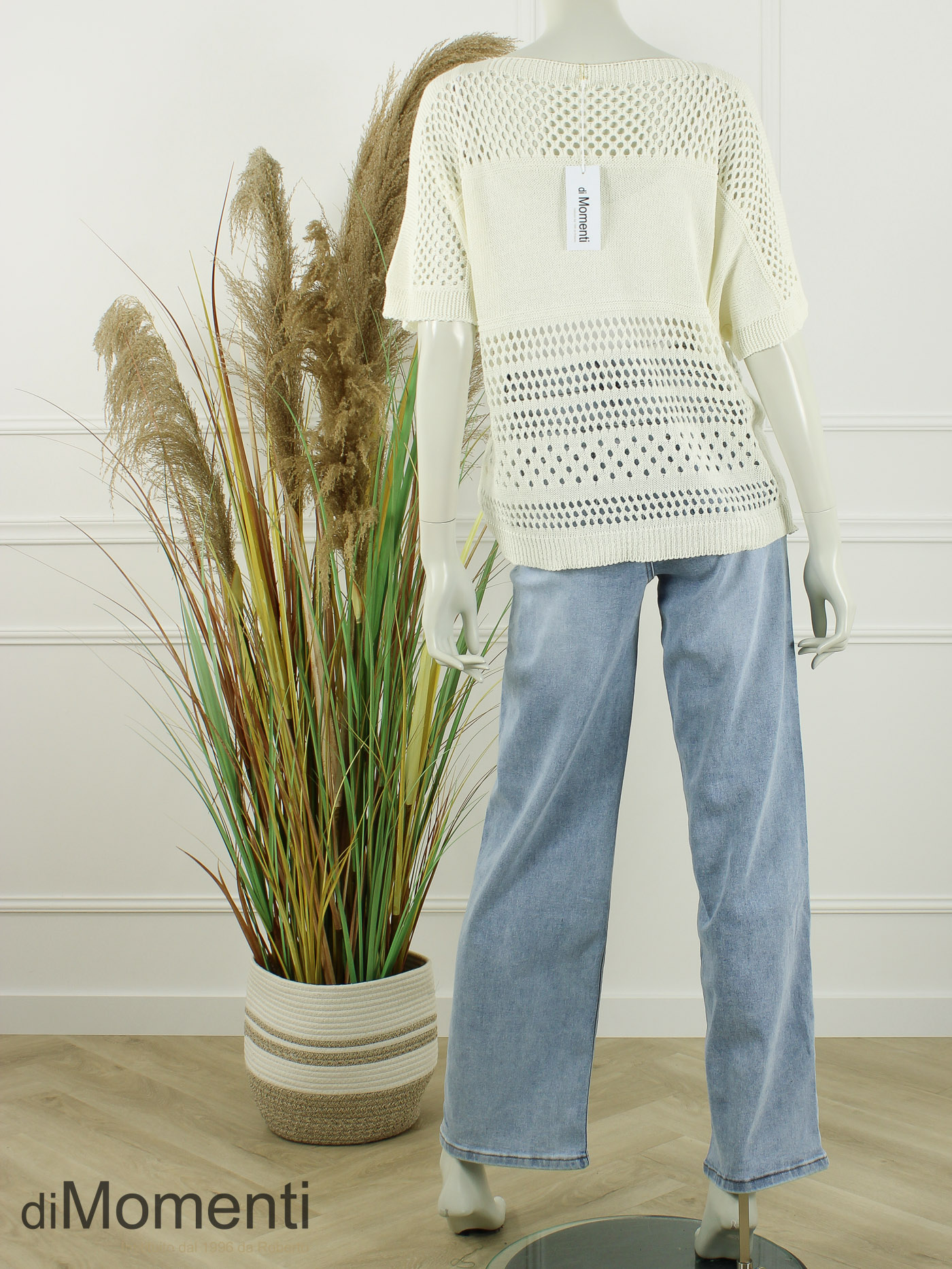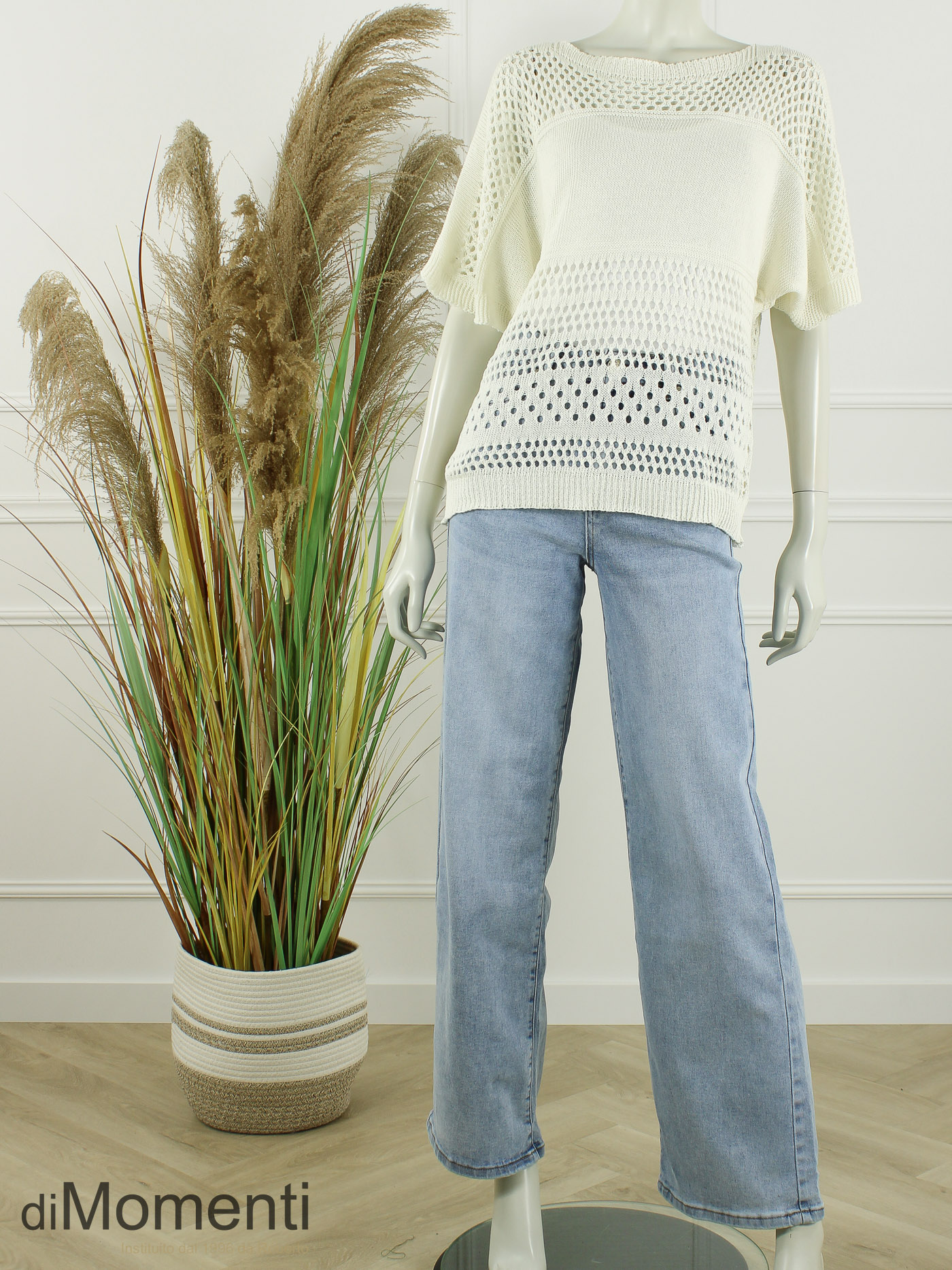 Deze royale top is de perfecte mix van comfort en vrouwelijke elegantie. De aangeknipte korte mouw geeft een moderne look, terwijl de verfijnde ajour-details zorgen voor een romantische touch.