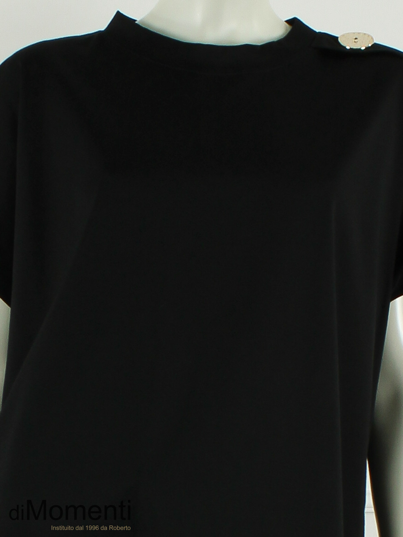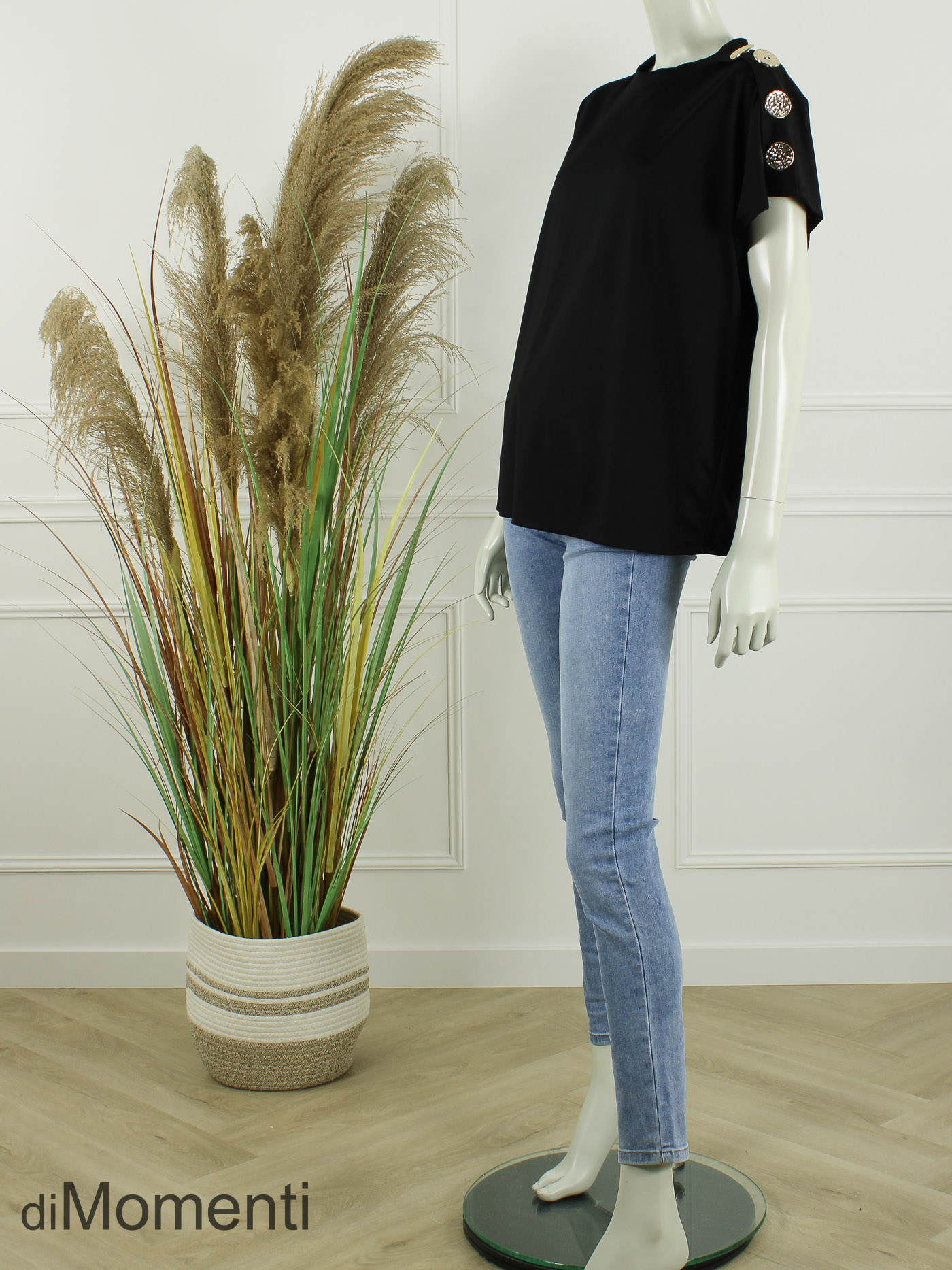 Deze stijlvolle uni top is een tijdloze favoriet voor jong en oud. De hoogwaardige viscosemix en rechtvallende pasvorm bieden optimaal draagcomfort. De kort aangeknipte mouw en vier goudkleurige knopen op de schouder geven een luxe touch. Een veelzijdige essential die elke outfit direct een chique upgrade geeft!