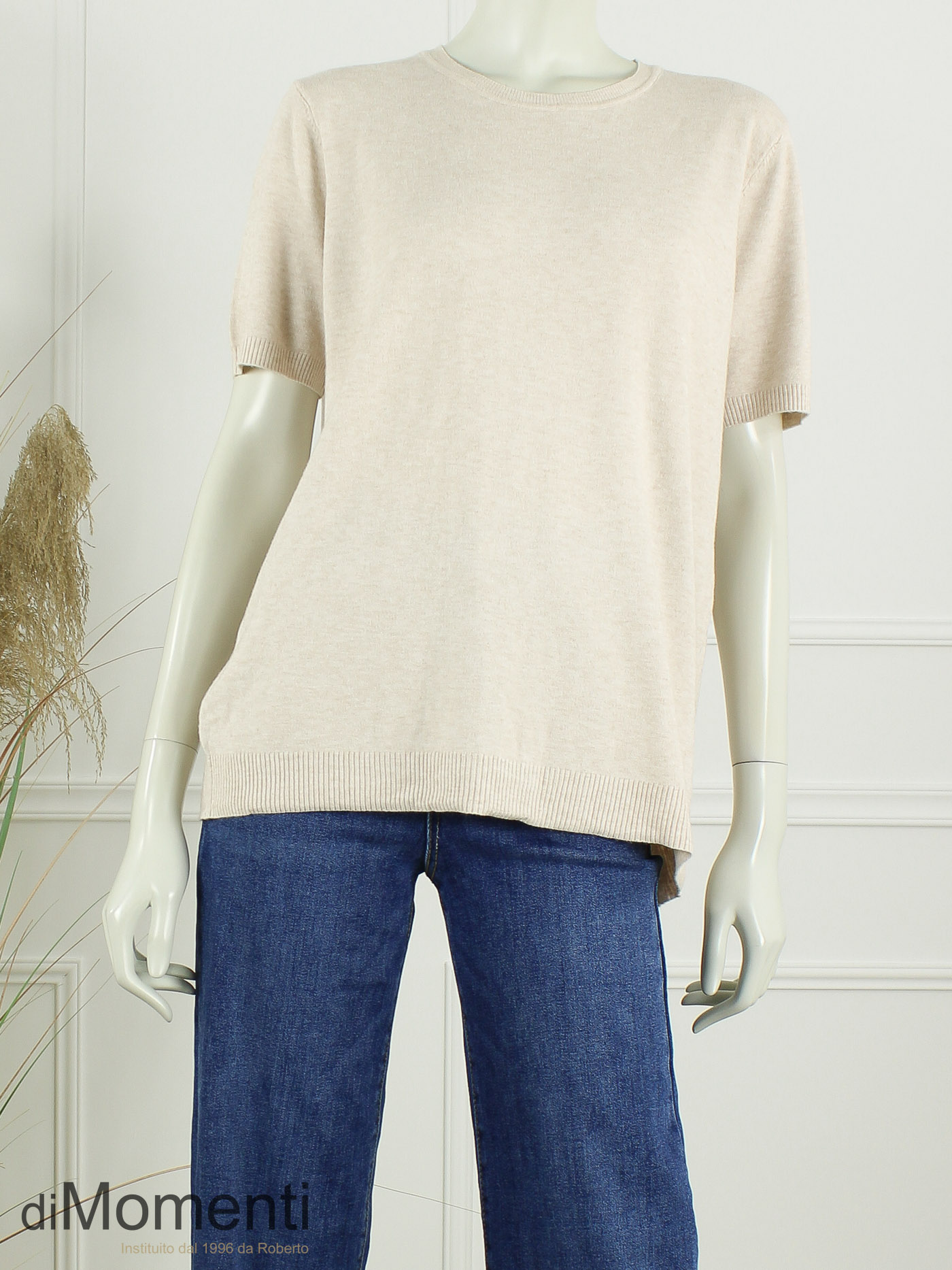Deze top heeft een tijdloze pasvorm die moeiteloos te combineren is met diverse stijlen, van casual tot chic. De korte mouwen maken hem veelzijdig voor gelaagde looks of als stand-alone item. Voeg deze veelzijdige en onderhoudsvriendelijke top toe aan je collectie en bied je klanten comfort en stijl in één.