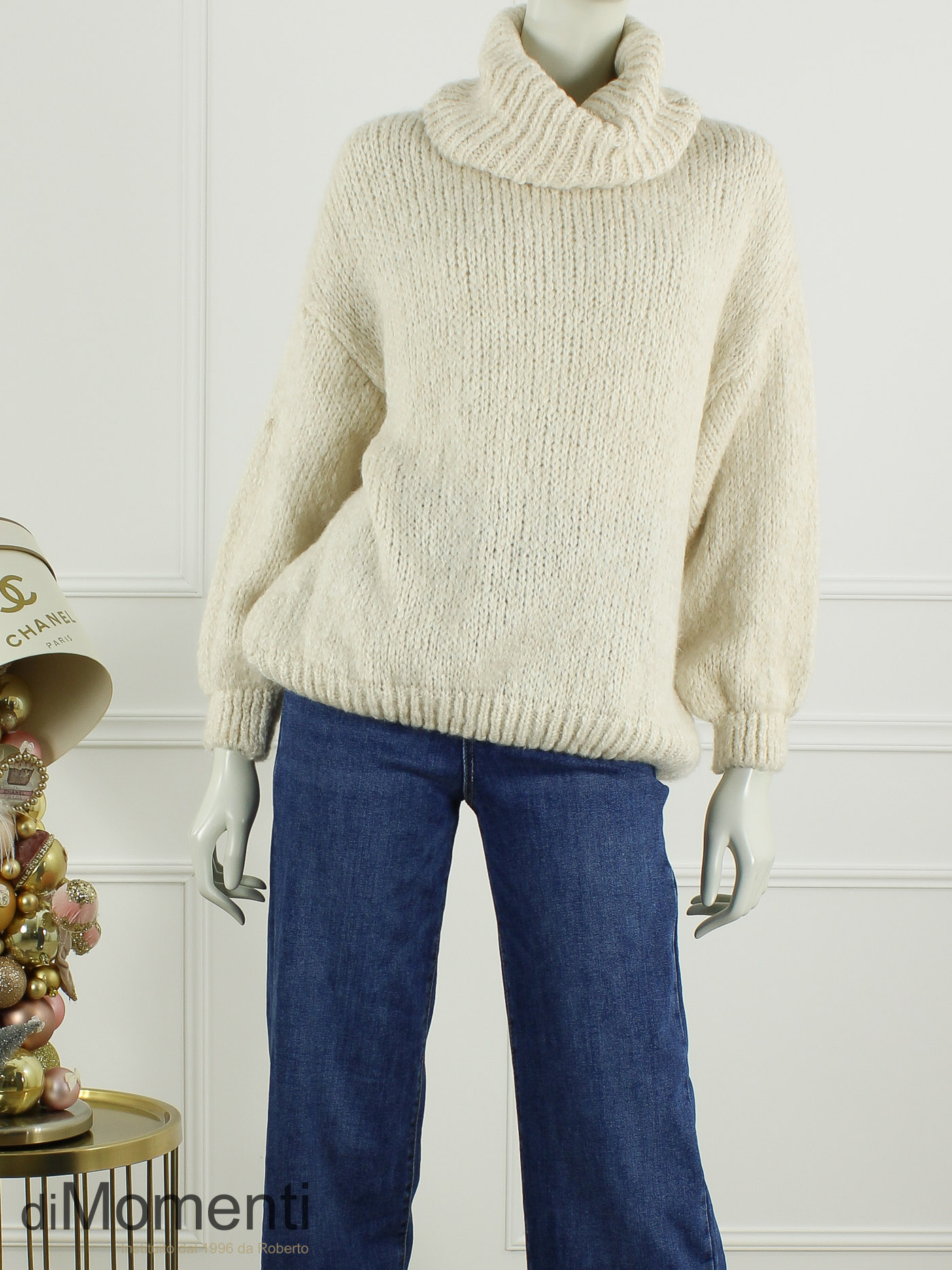 Deze stoere, royale trui met warme kol is gebreid in een trendy patentsteek. Gemaakt van een mooie, fijne mix van wol en viscose voor optimaal comfort. Dit kwalitatieve item is One Size (goed t/m maat 44) en verkrijgbaar in de nieuwste modekleuren.