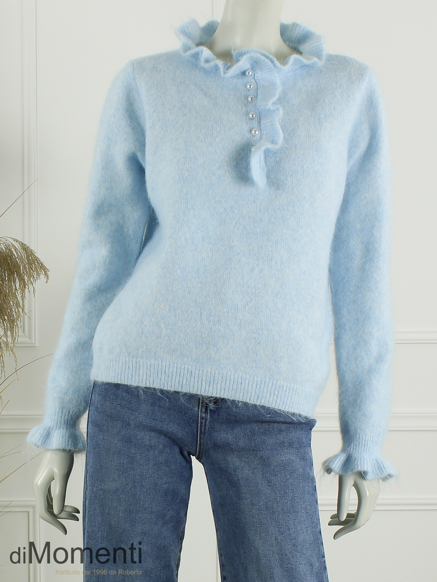 Voeg een vleugje elegantie toe aan je collectie met deze super vrouwelijke trui van Millenium Paris. Prachtig afgewerkt met een ruche langs de hals, parelknoopjes en ruches aan de mouwen. Deze ultrazachte mix van wol en polyamide valt ruim en is verkrijgbaar in de nieuwste voorjaarskleuren.