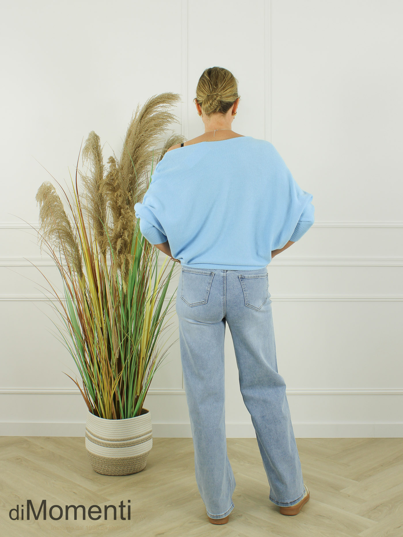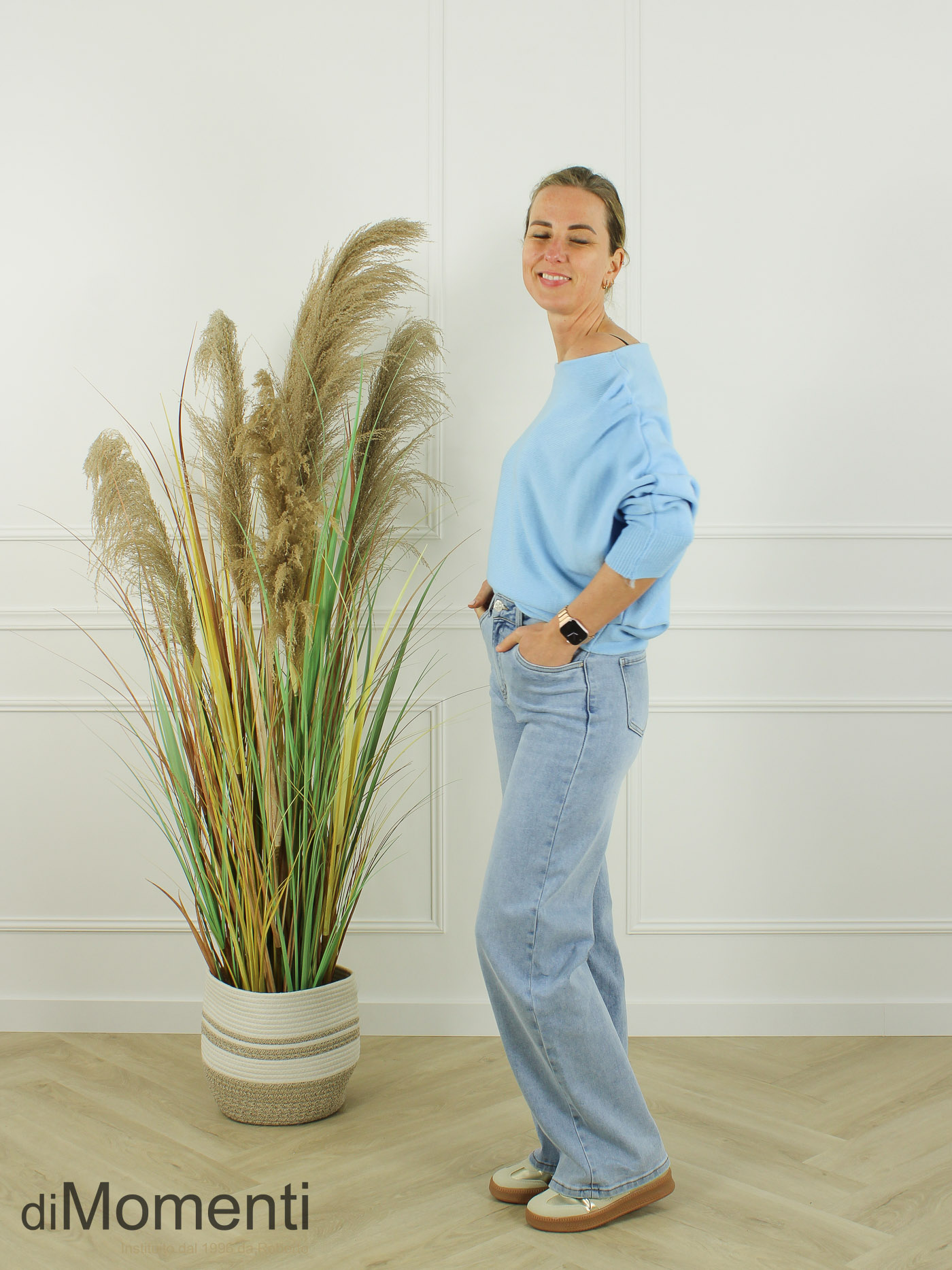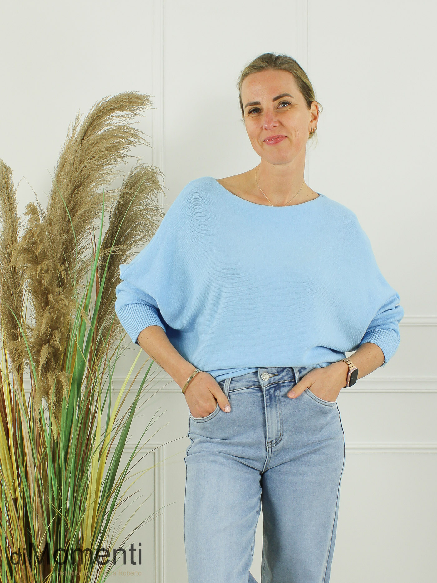 Nieuw is dit model: een stijlvolle gebreide trui met een elegante boothals en ¾ de mouw. De mouwen zijn afgewerkt met een mooie boord waardoor dit mooi aansluit. Dankzij het royale model tekent deze trui niet rond de taille, waardoor hij flatteus valt.