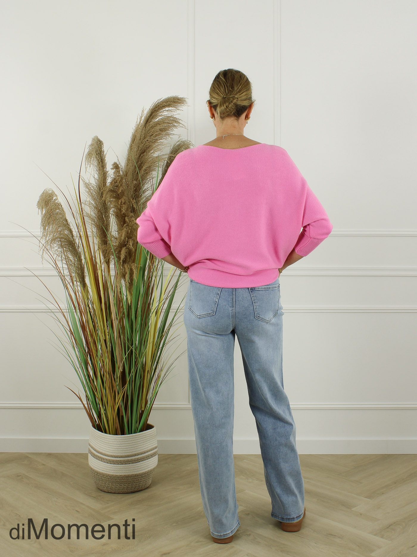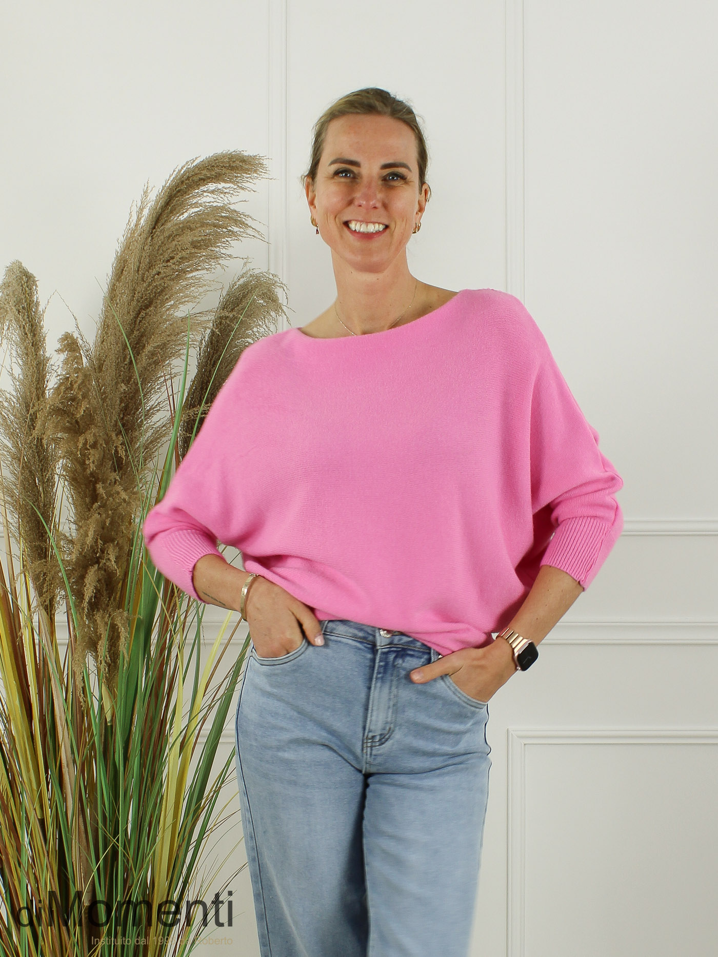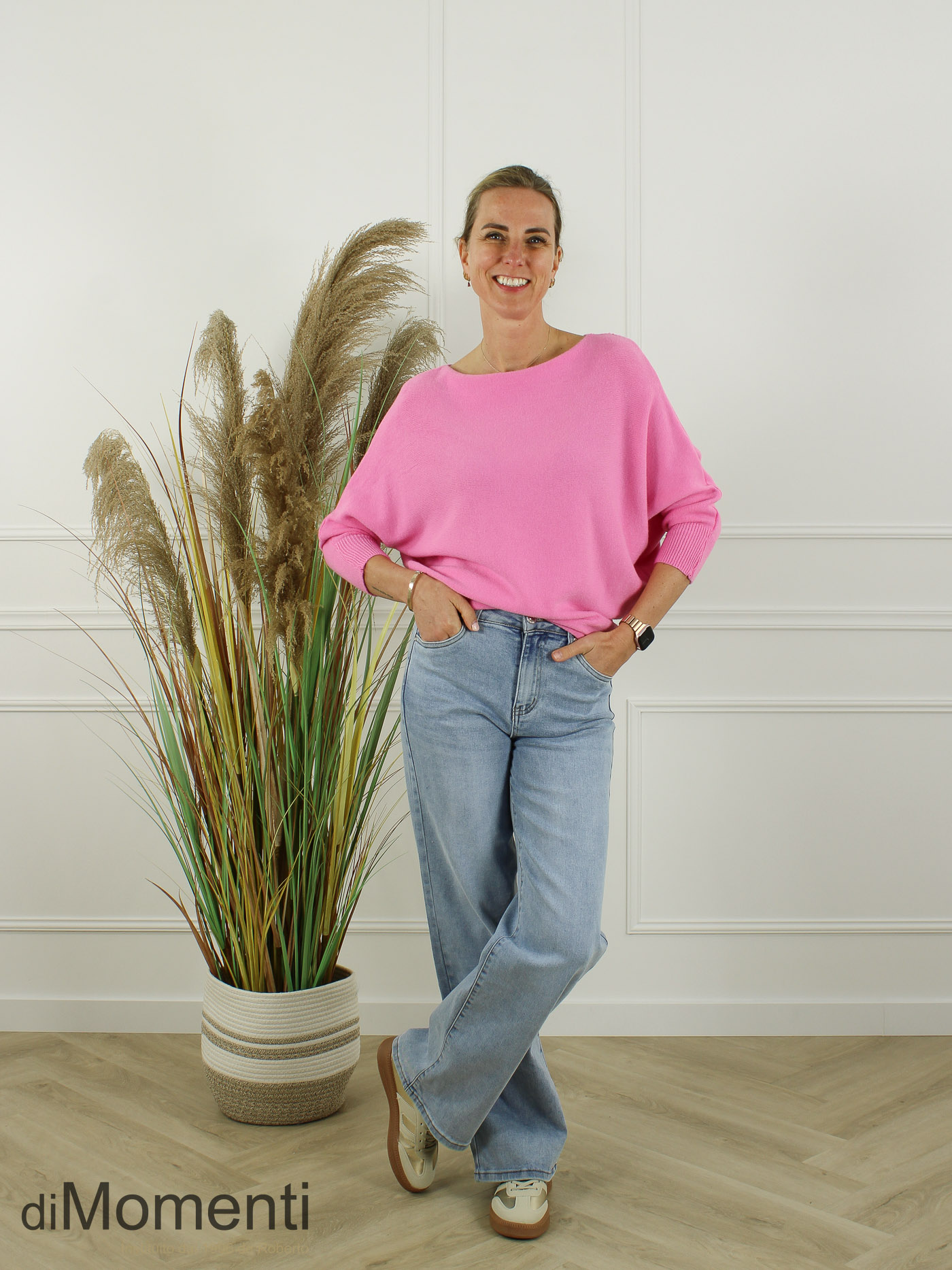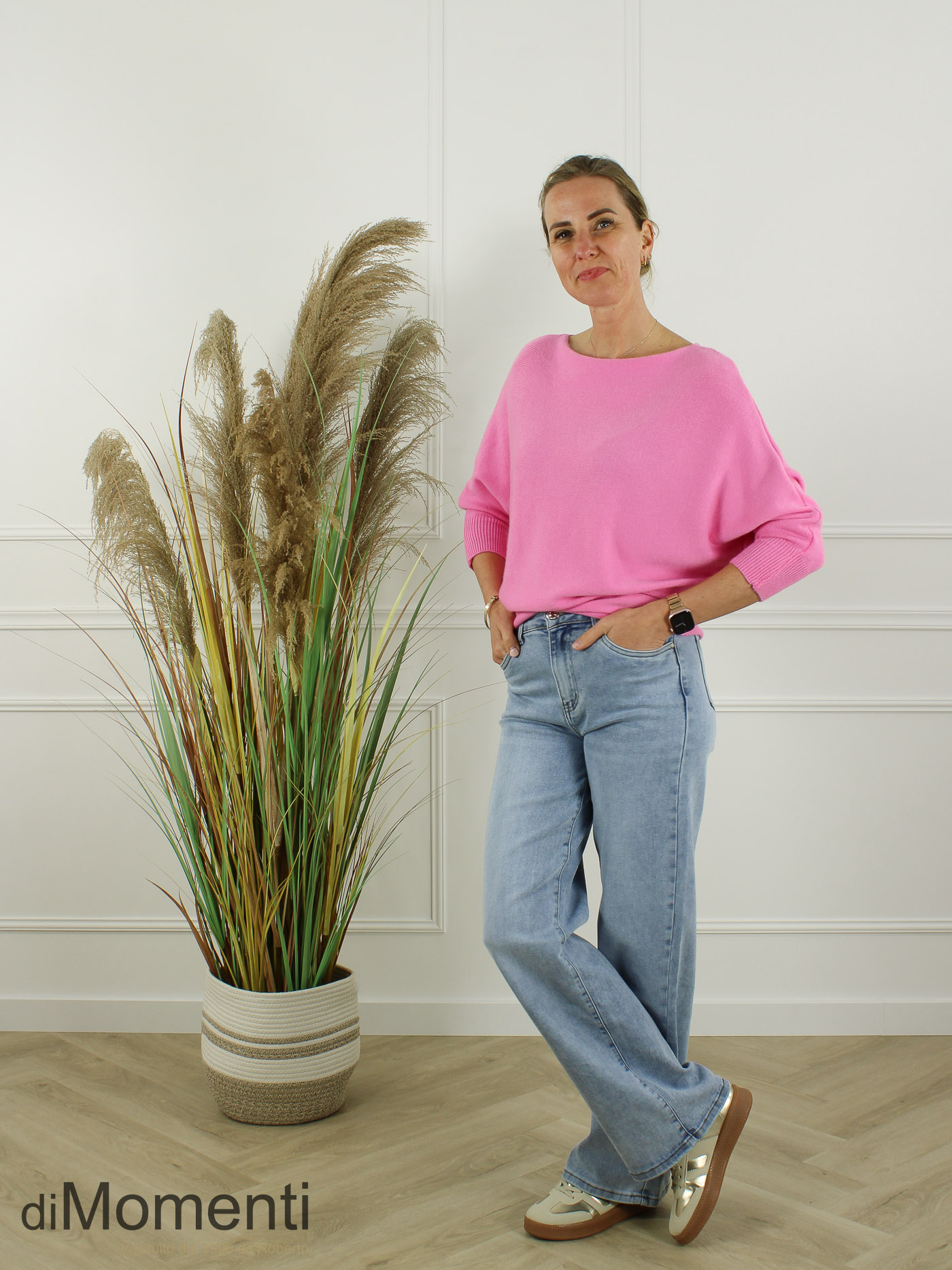 Nieuw is dit model: een stijlvolle gebreide trui met een elegante boothals en ¾ de mouw. De mouwen zijn afgewerkt met een mooie boord waardoor dit mooi aansluit. Dankzij het royale model tekent deze trui niet rond de taille, waardoor hij flatteus valt.