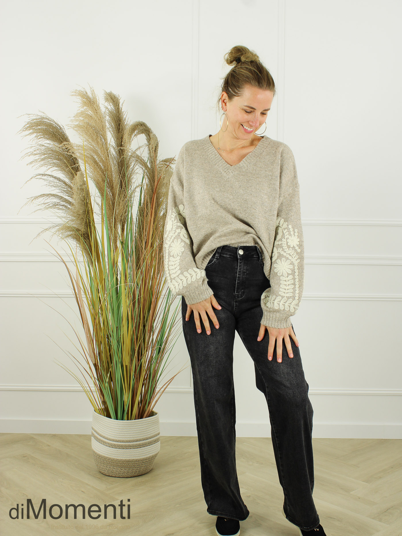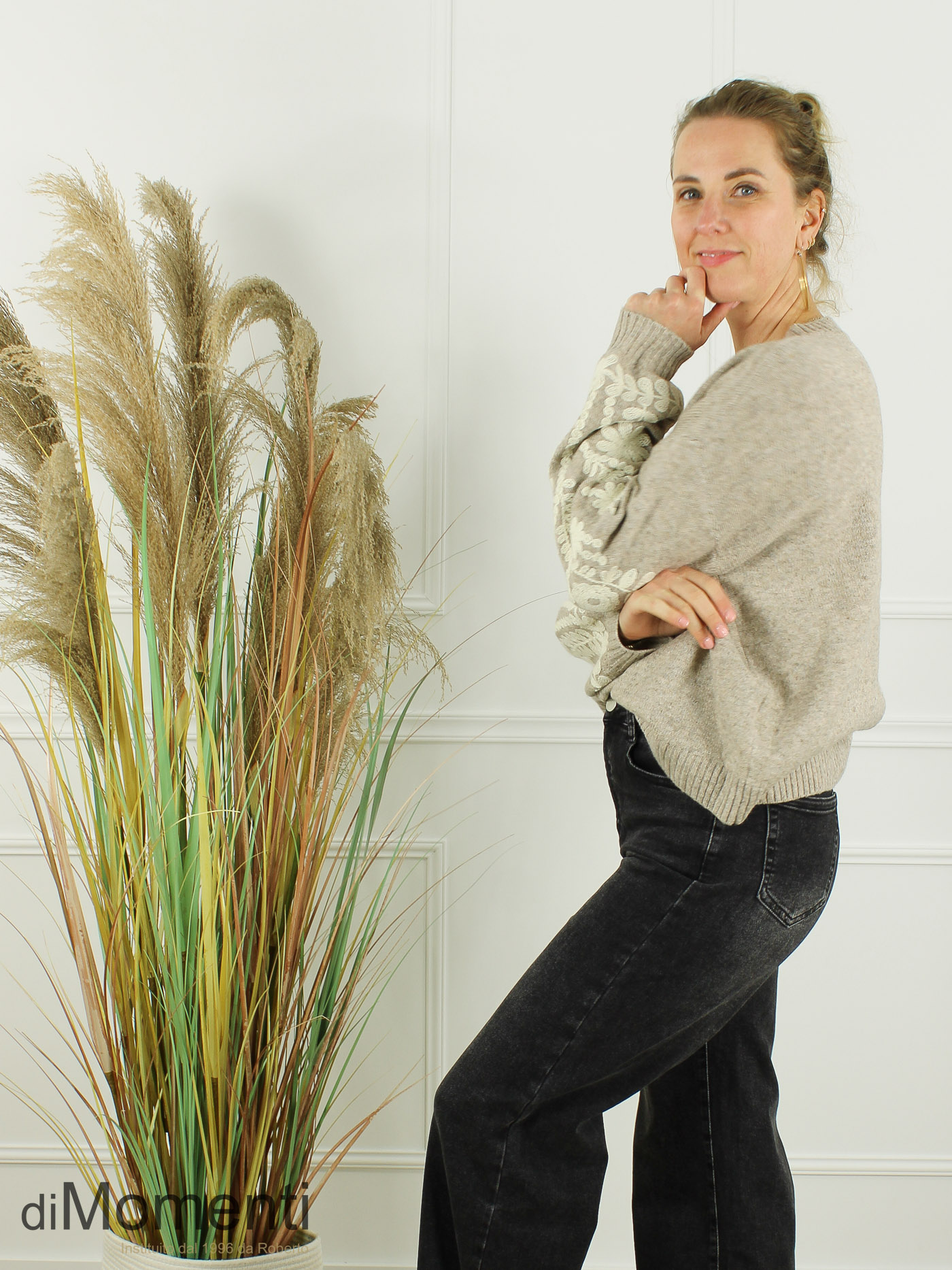 Deze trendy, comfy trui van Millenium is een stijlvolle aanwinst! De ruimvallende trui met V-hals is gemaakt van een fijne mix met een beetje wol. De mooie borduur applicatie op de mouw geeft een uniek en verfijnd accent. Een warme en modieuze keuze voor uw inkoop.