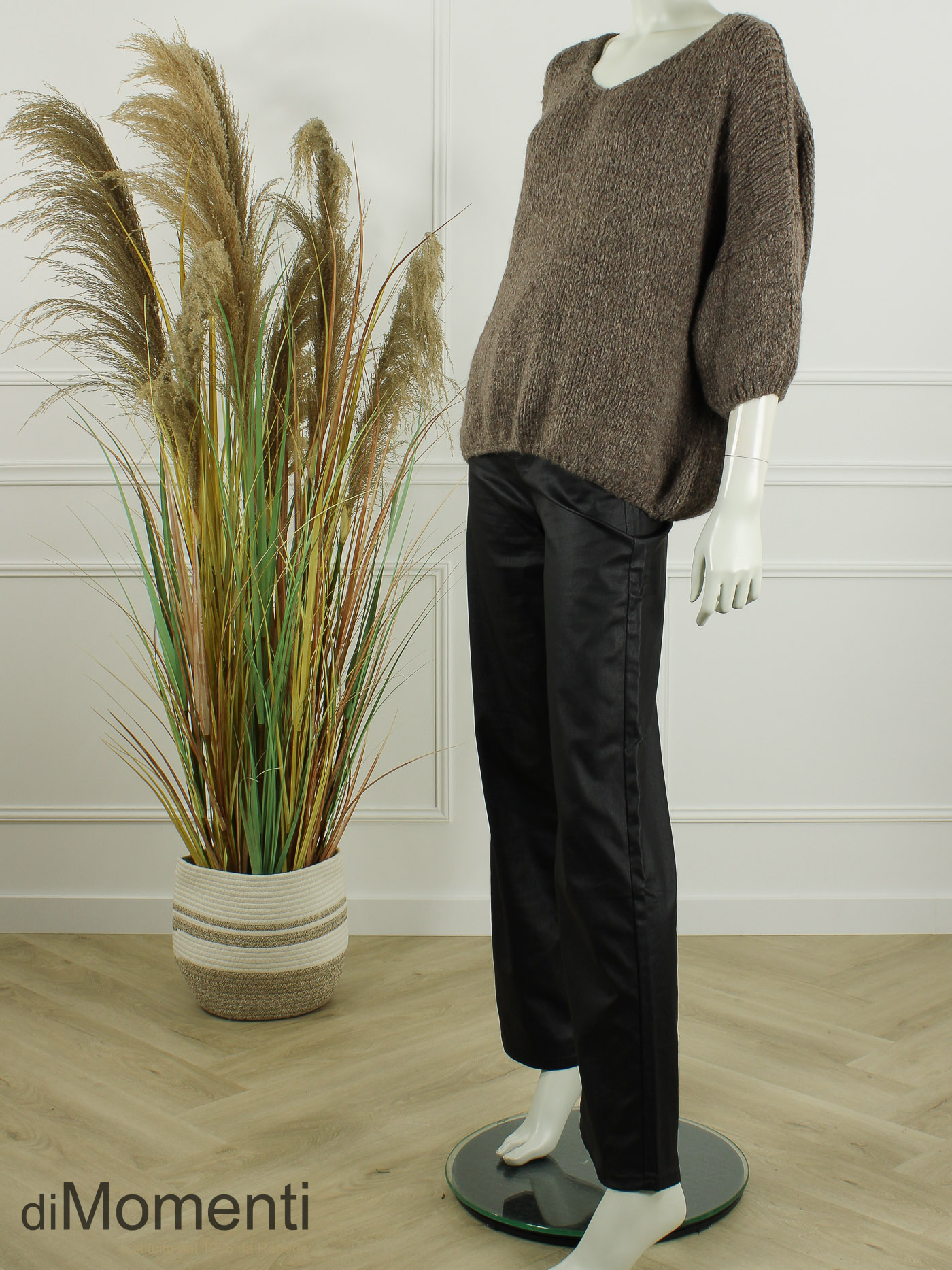 Deze gebreide, royaal vallende trui is een must-have voor het najaar! De stoere patentsteek en de V-hals zorgen voor een stijlvolle look. Met 3/4 mouwen is deze trui super comfortabel, mooi om te combineren op een stijlvolle rok of mooie jeans. Nu verkrijgbaar in de nieuwste najaarskleuren.