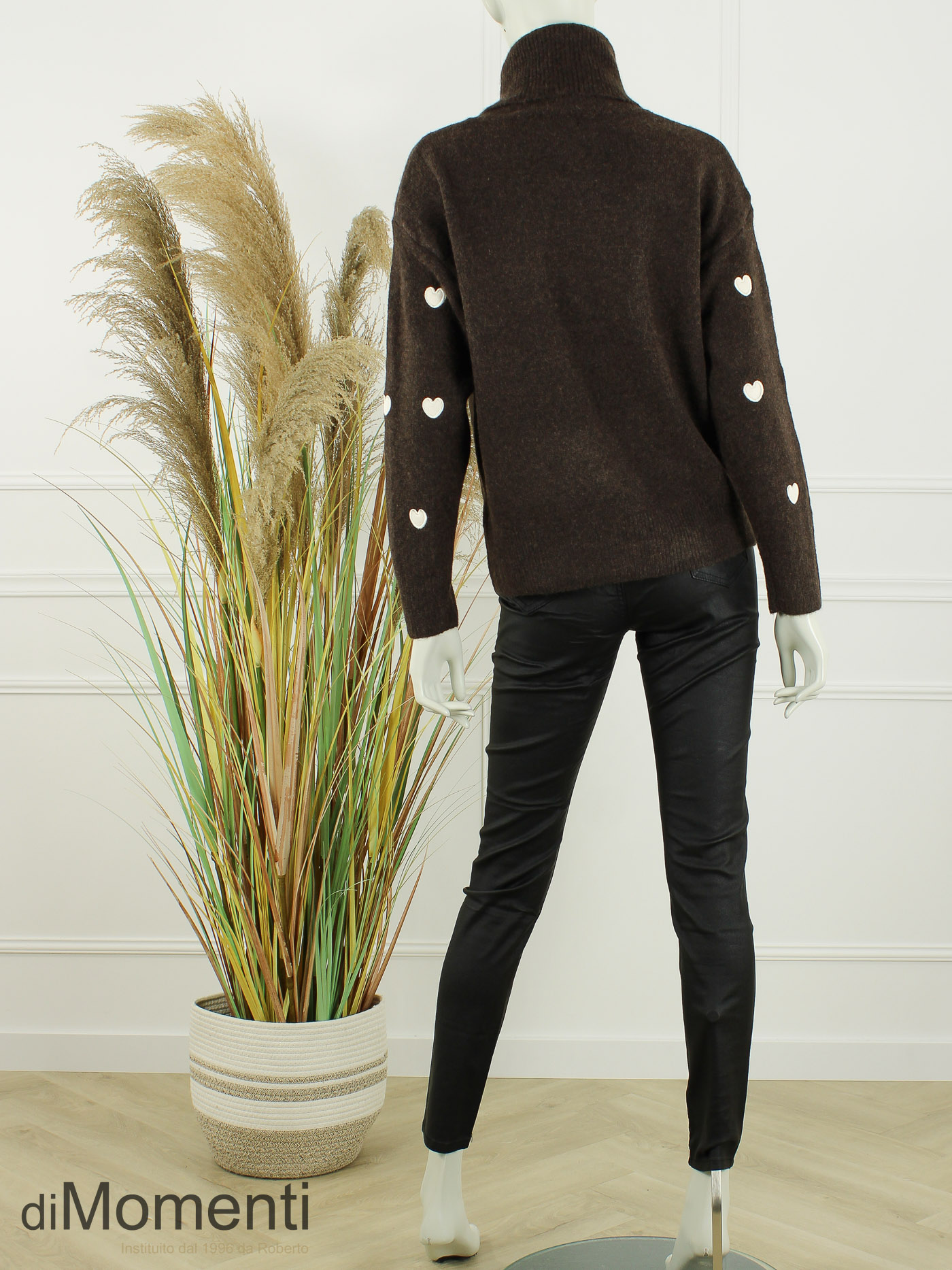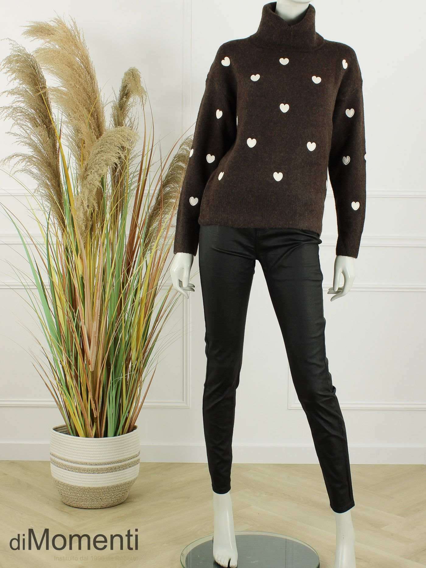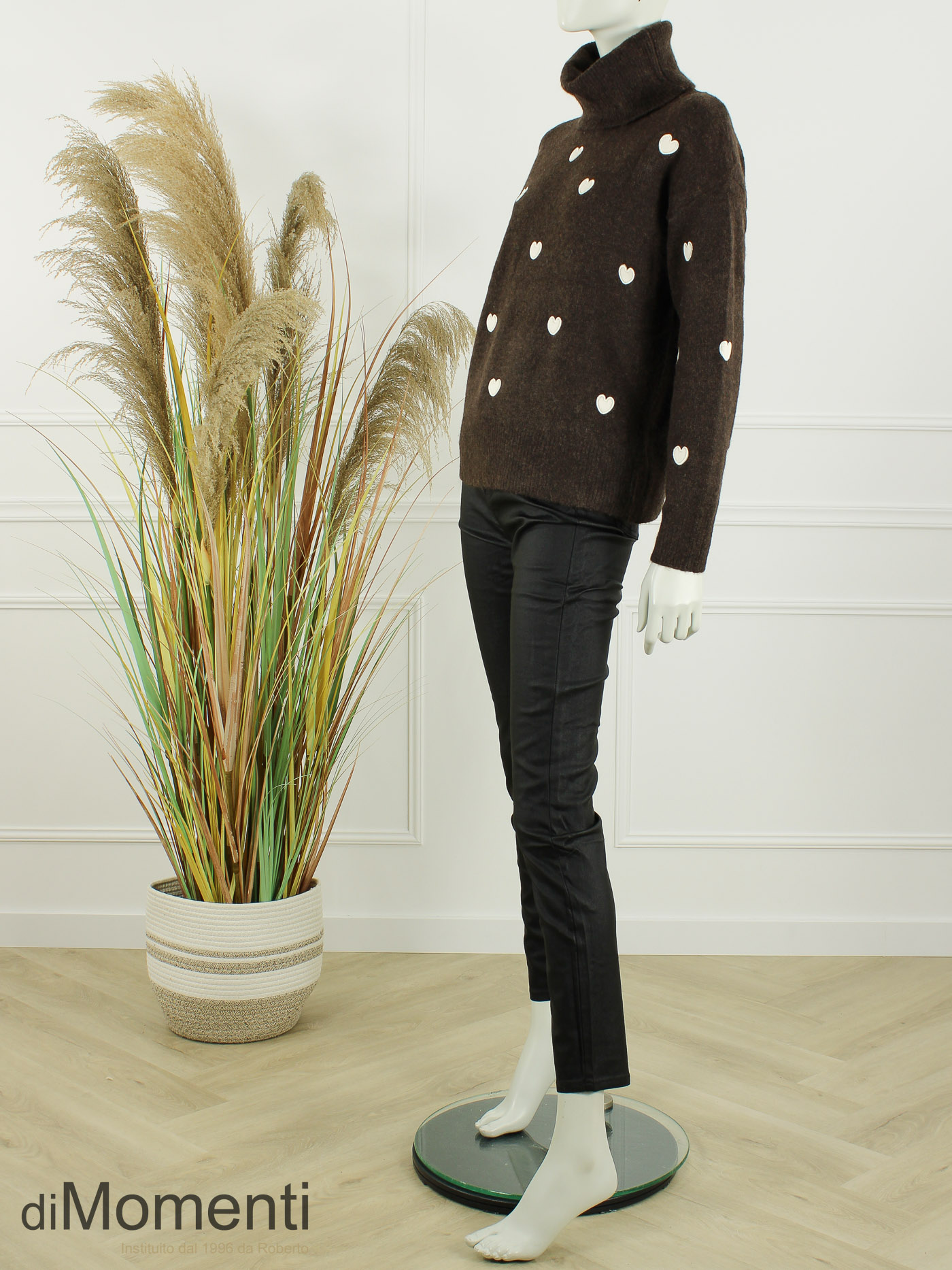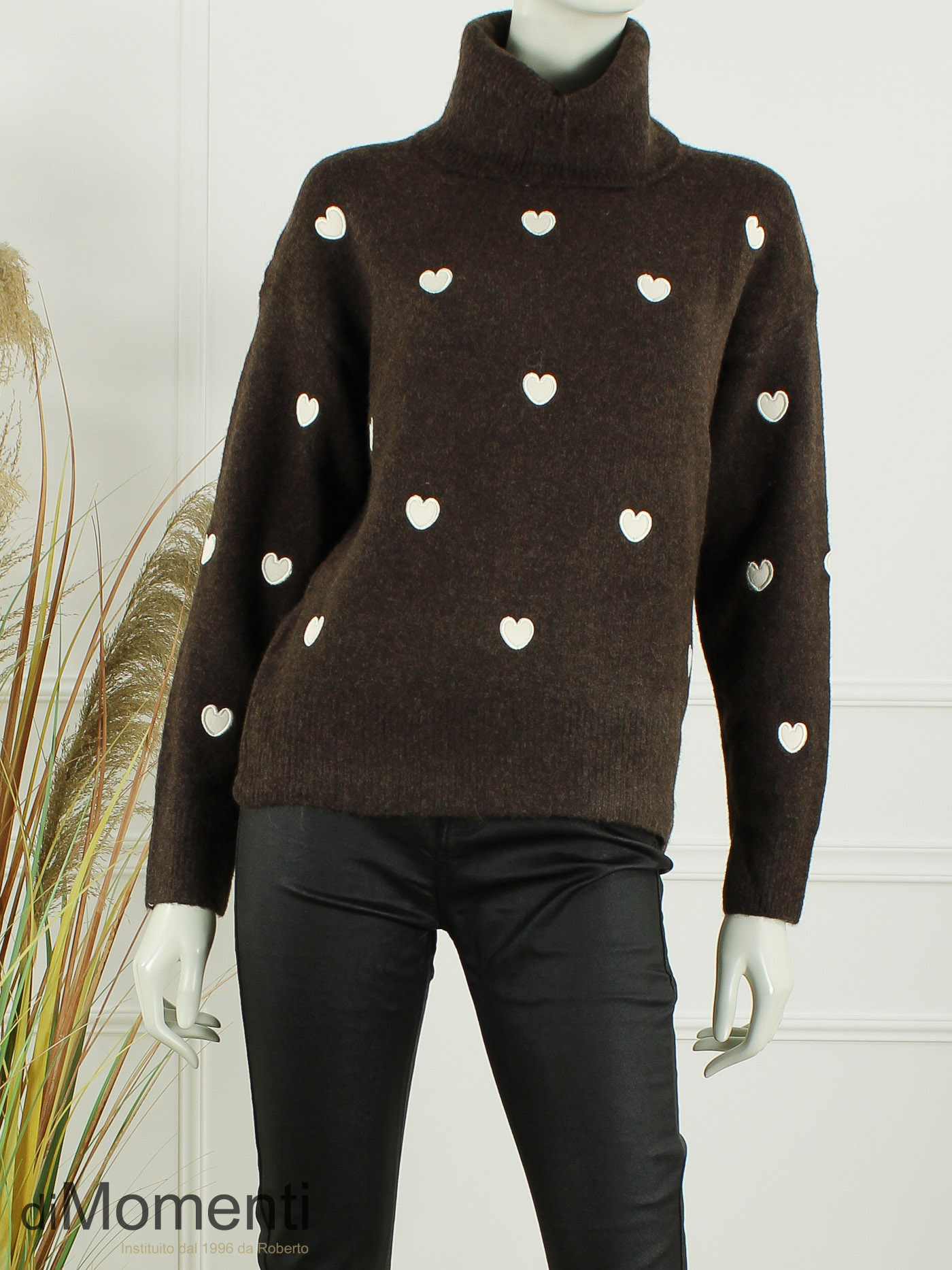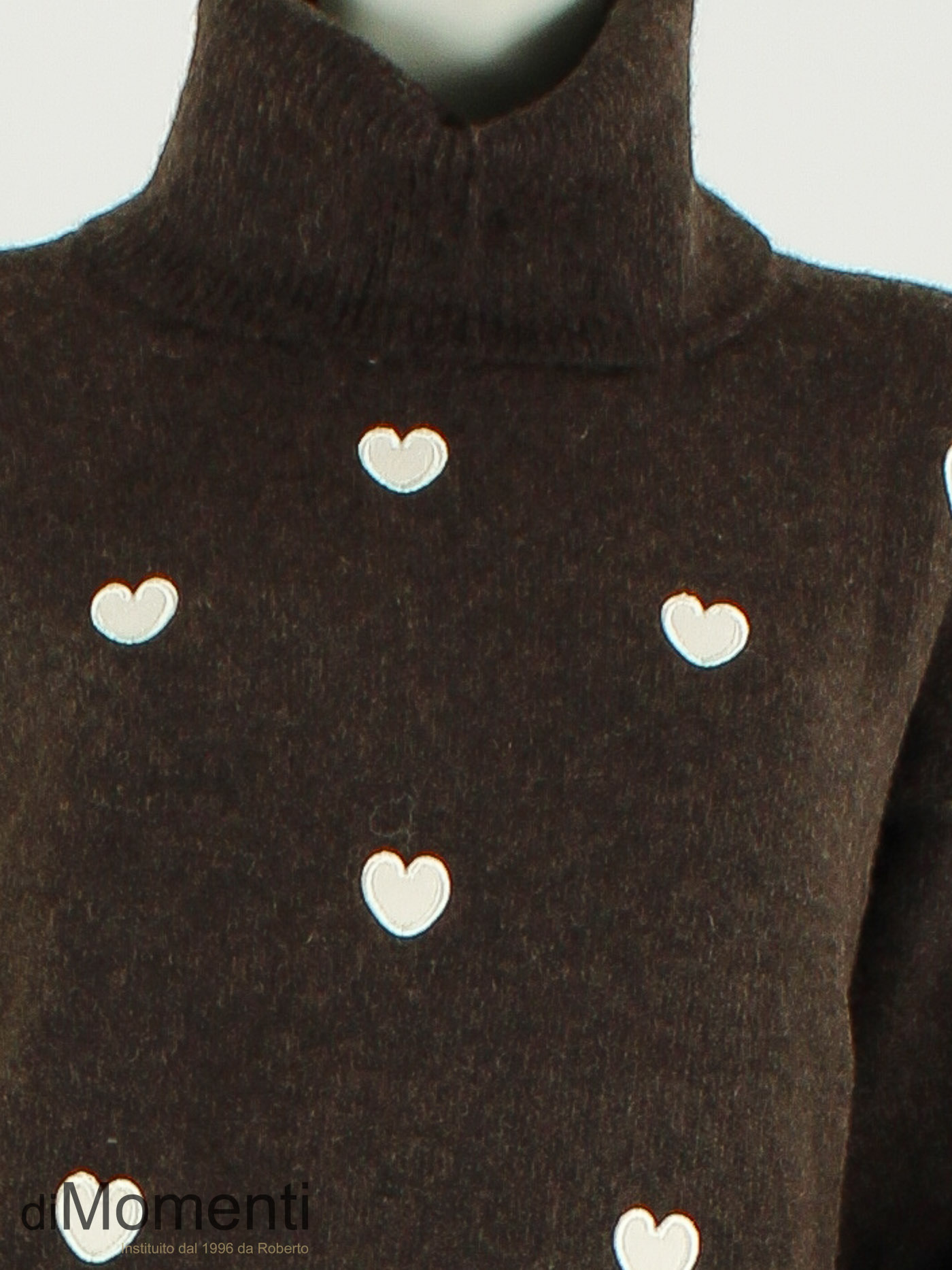 Deze superzachte trui van Ciao Milano is gebreid in een prachtige melé garen en voorzien van een warme kol. De voorzijde is versierd met een geborduurde hartjes applicatie, wat dit ruimvallende model trendy maakt. Heerlijk comfortabel ( met ietsje wol)en verkrijgbaar in de nieuwste modekleuren.
