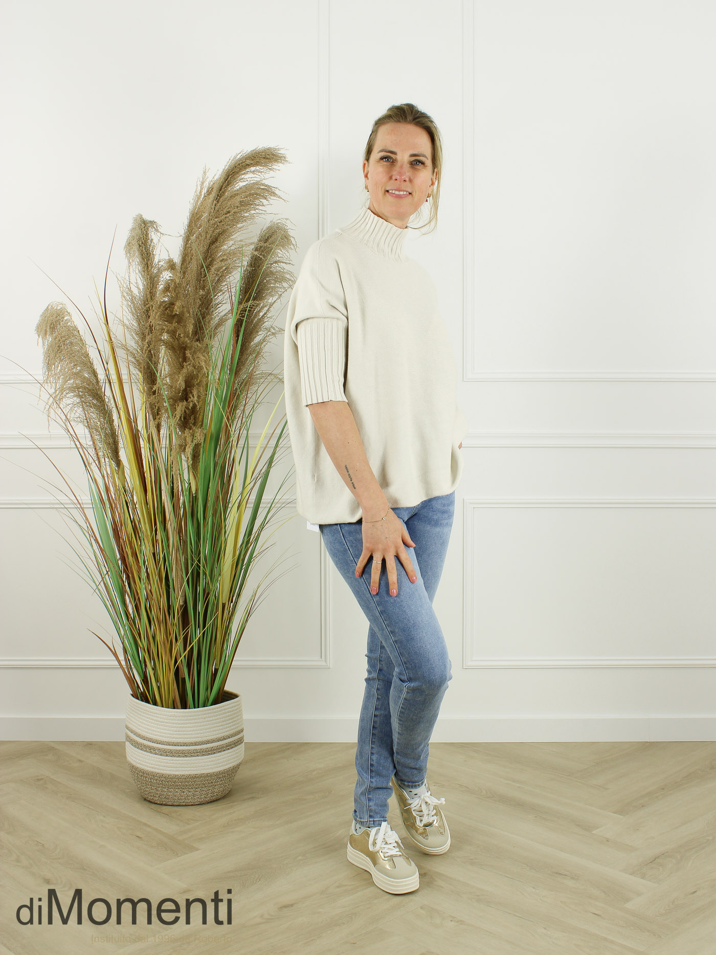 Deze ruime, rechtvallende trui is de perfecte basis voor elk voorjaarslook. Uitgevoerd in prachtige uni-kleuren met een trendy 3/4 mouw en een stijlvolle turtle hals. Dankzij de materiaalmix met 50% viscose draagt de trui heerlijk zacht en comfortabel. Ideaal om eindeloos te combineren!
