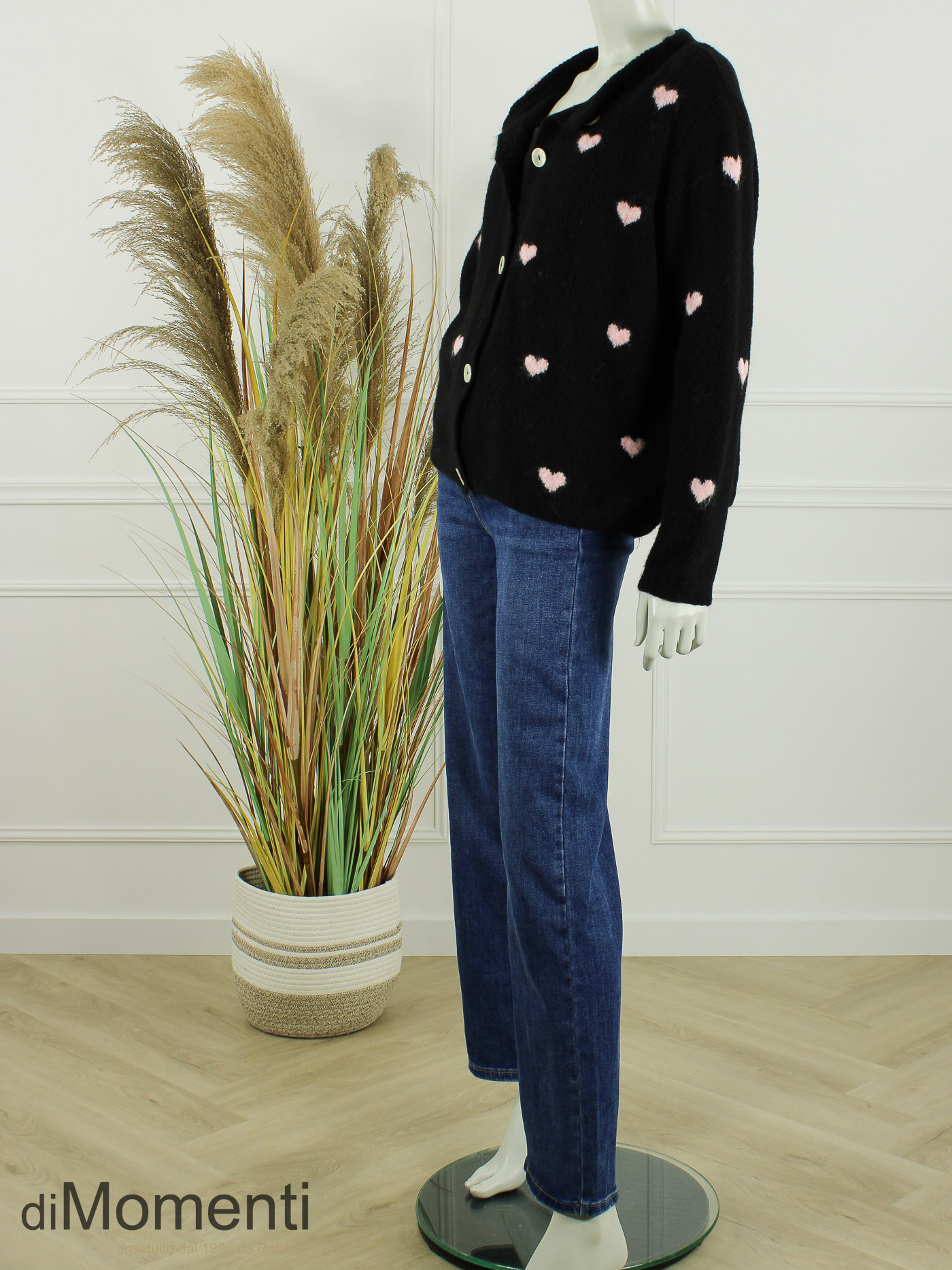 Dit super zachte vestje met ronde hals is helemaal trendy! Het ingebreide hartjesmotief maakt dit een onweerstaanbare eyecatcher. Gemaakt van een fijne, soepele materialenmix. Dit comfy model is One Size en valt goed tot en met maat 42/44.