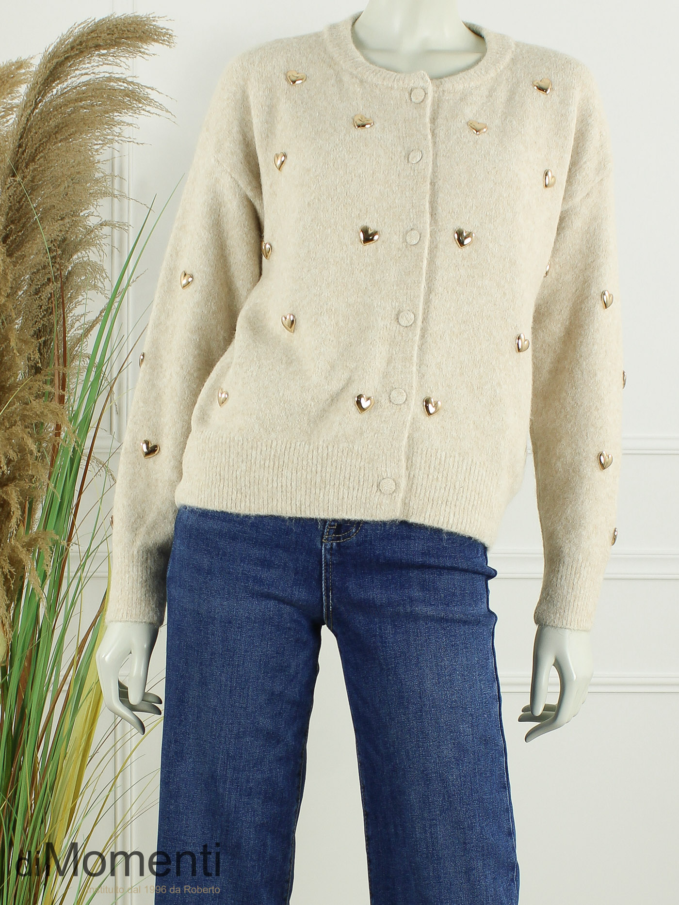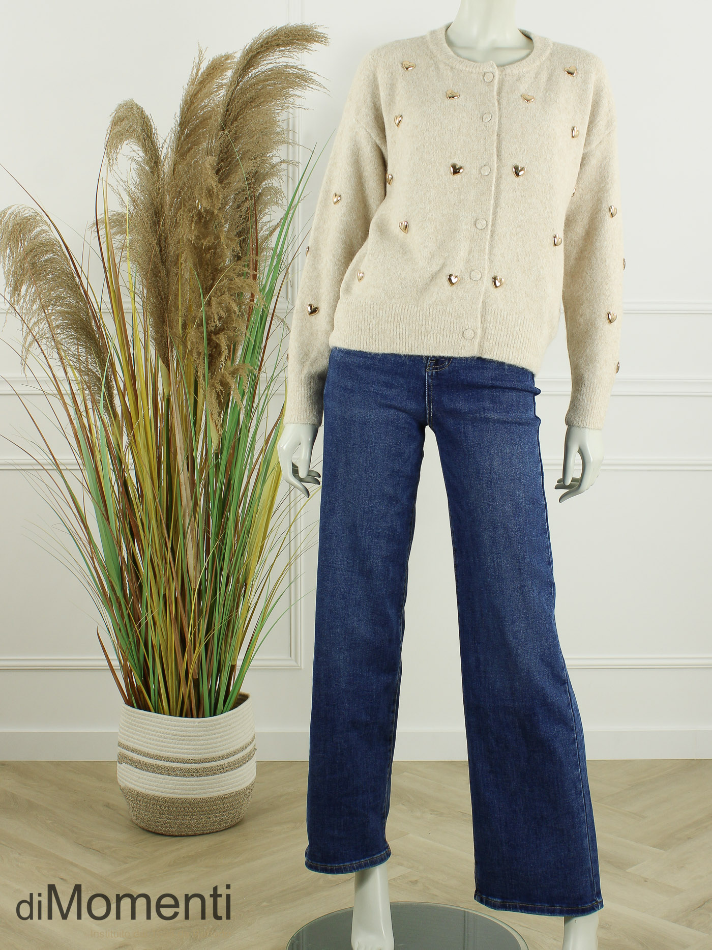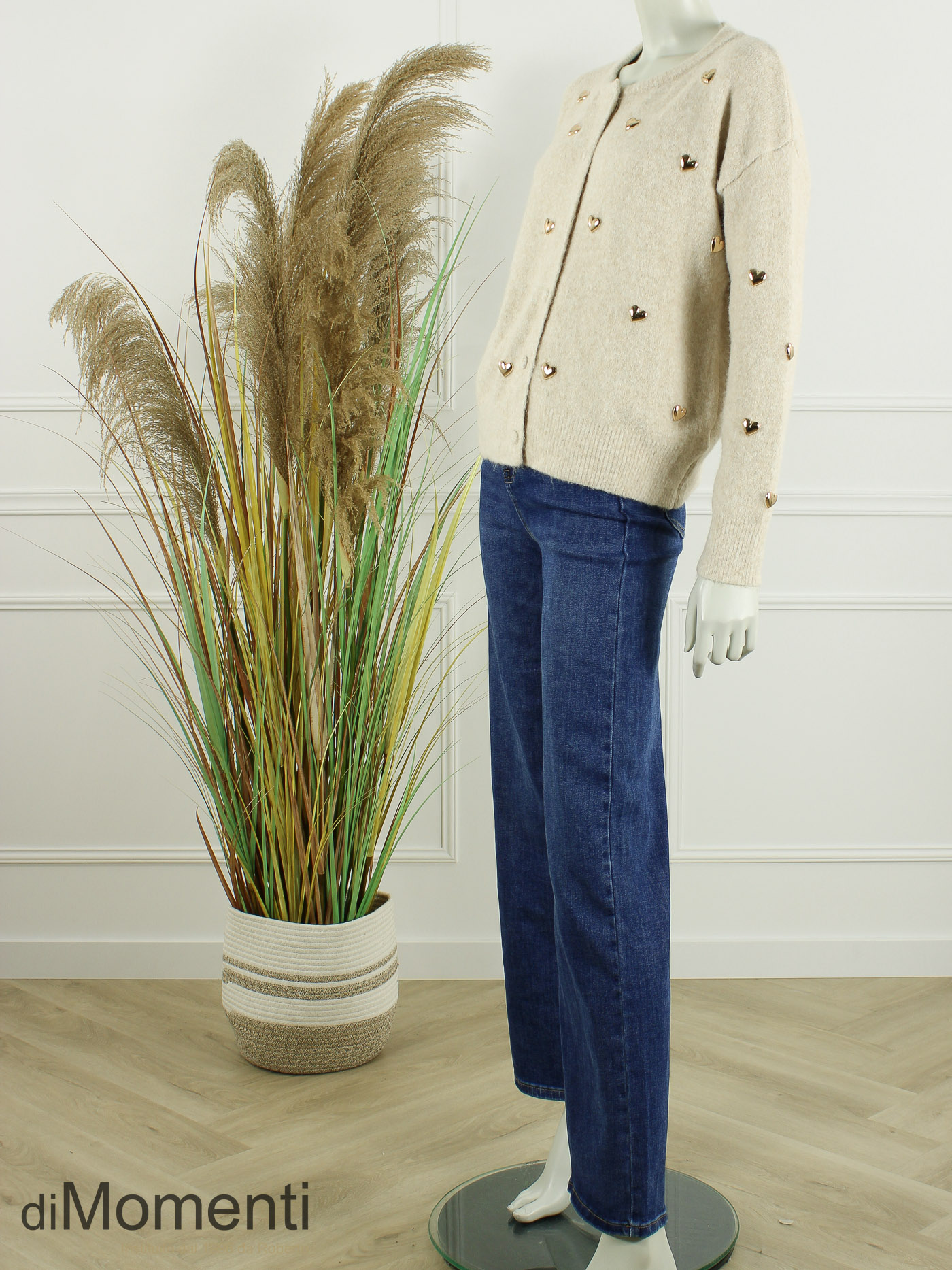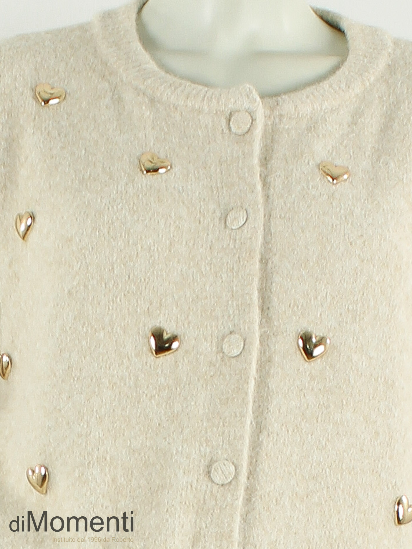 Dit super zachte, trendy vestje van Flamant is onweerstaanbaar! De goudkleurige hartjes geven een glamoureuze look. Dit vestje is gemaakt in een mooie, fijne kwaliteit en zeer netjes afgewerkt. De mooie knoopjes geven een chique uitstraling.