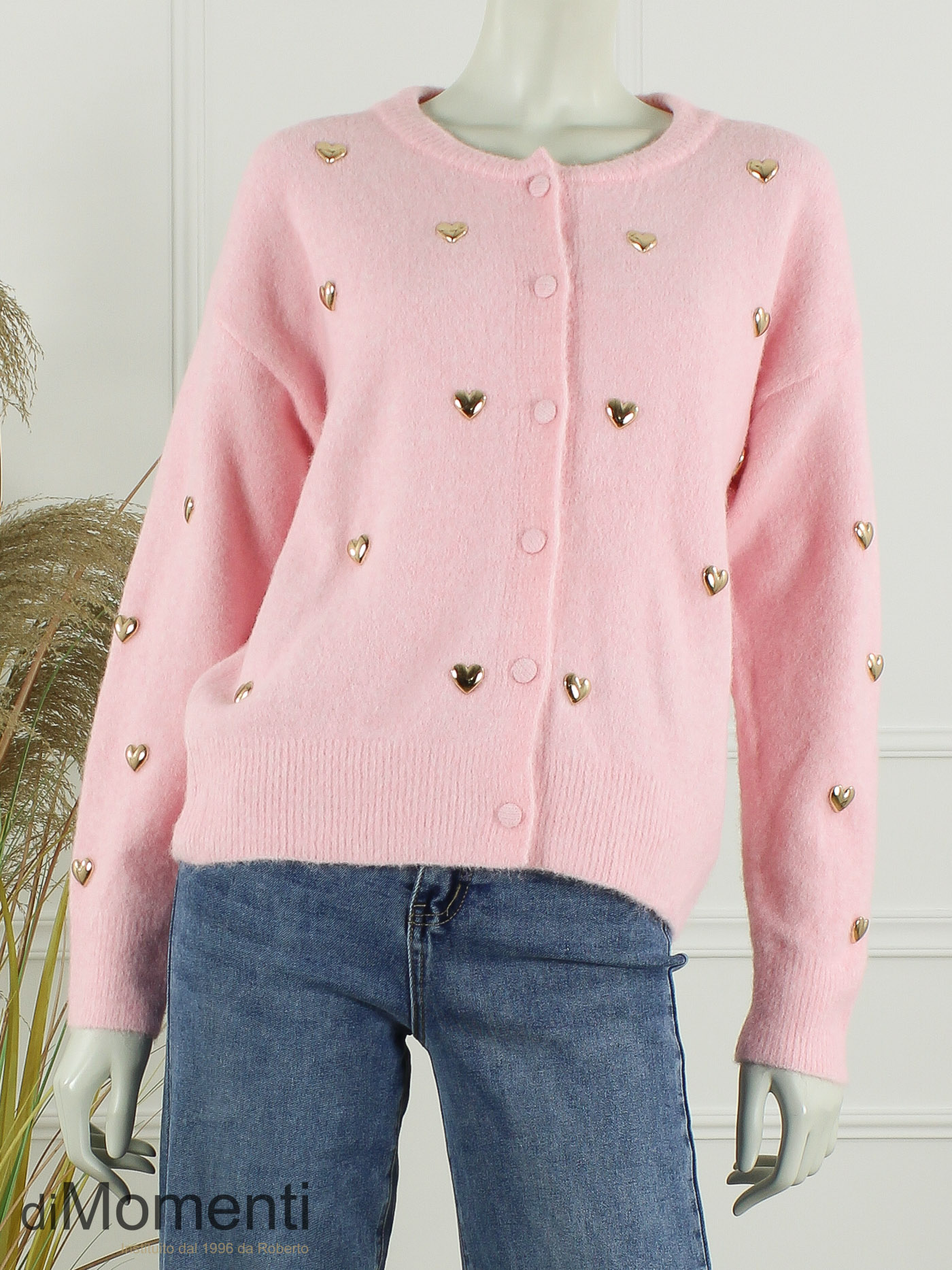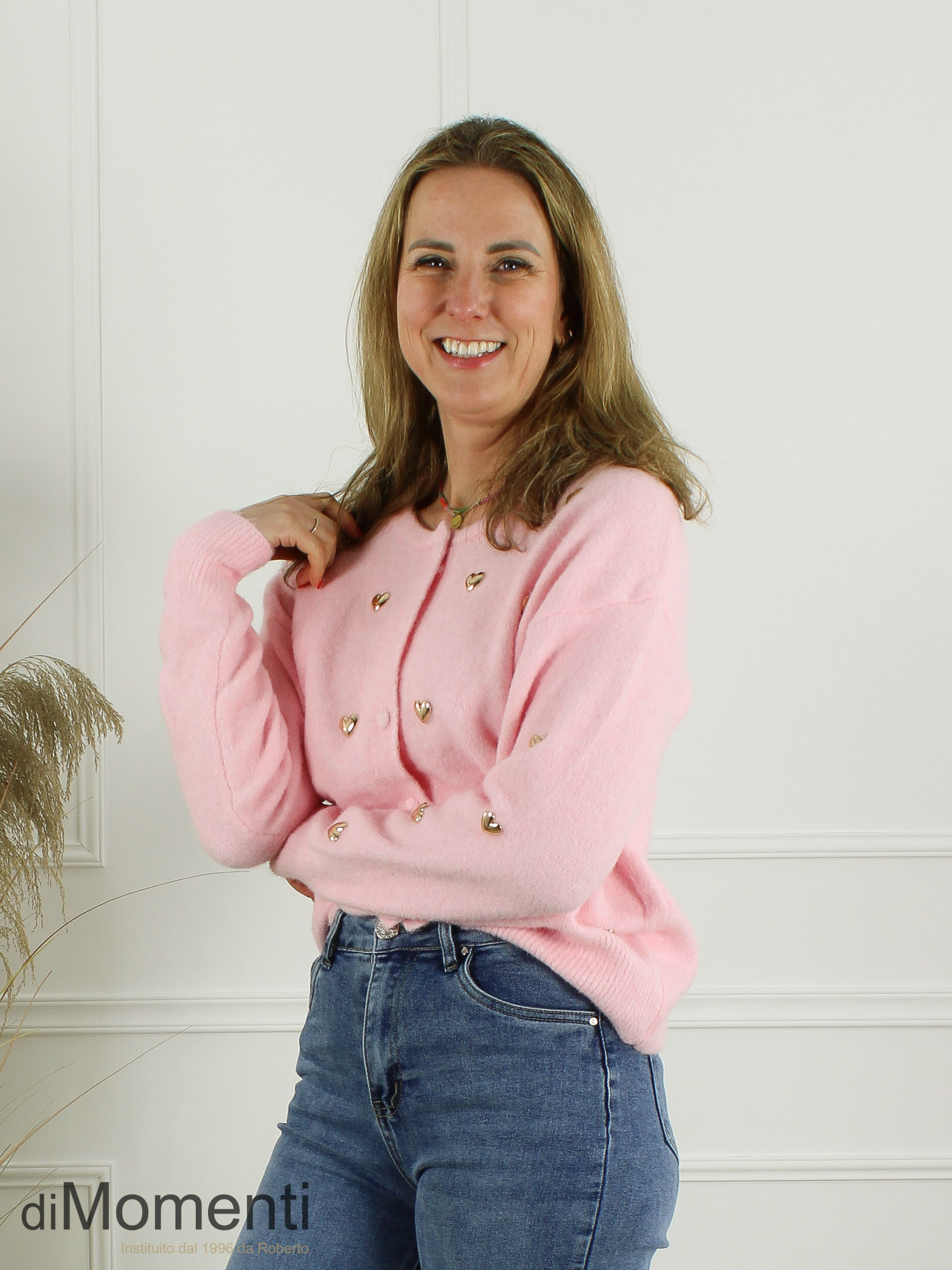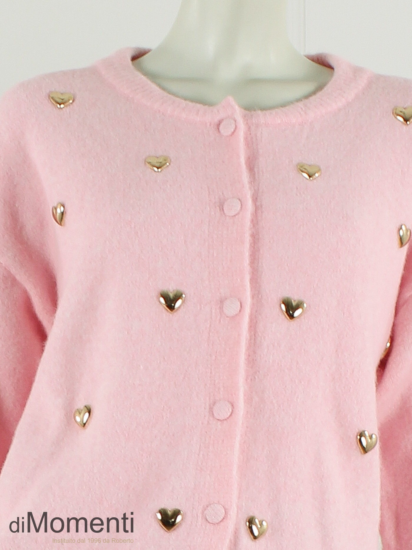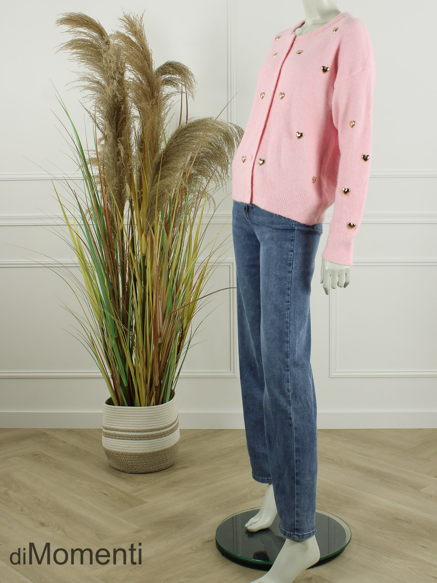 Dit super zachte, trendy vestje van Flamant is onweerstaanbaar! De goudkleurige hartjes geven een glamoureuze look. Dit vestje is gemaakt in een mooie, fijne kwaliteit en zeer netjes afgewerkt. De mooie knoopjes geven een chique uitstraling.